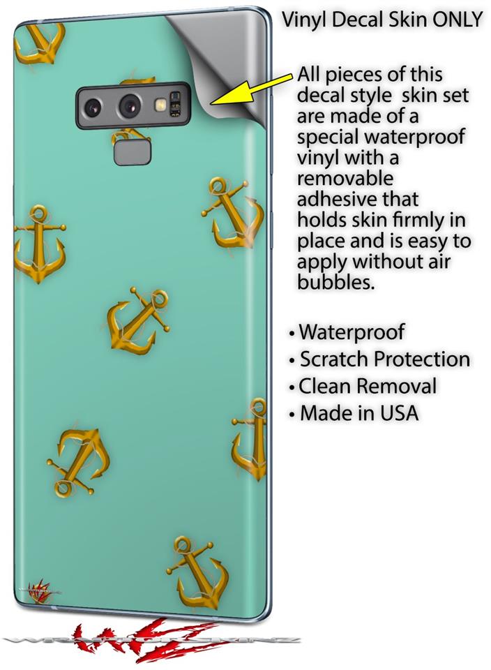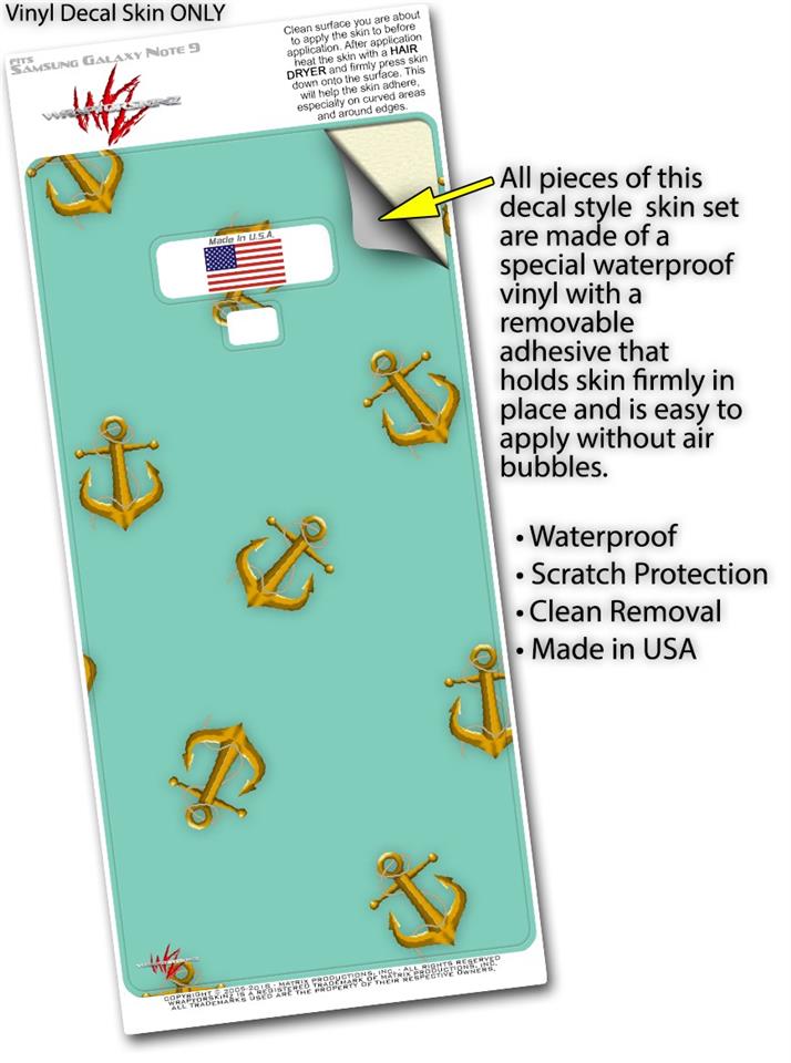 Decal style Skin Wrap compatible with Samsung Galaxy Note 9 Anchors Away Seafoam Green