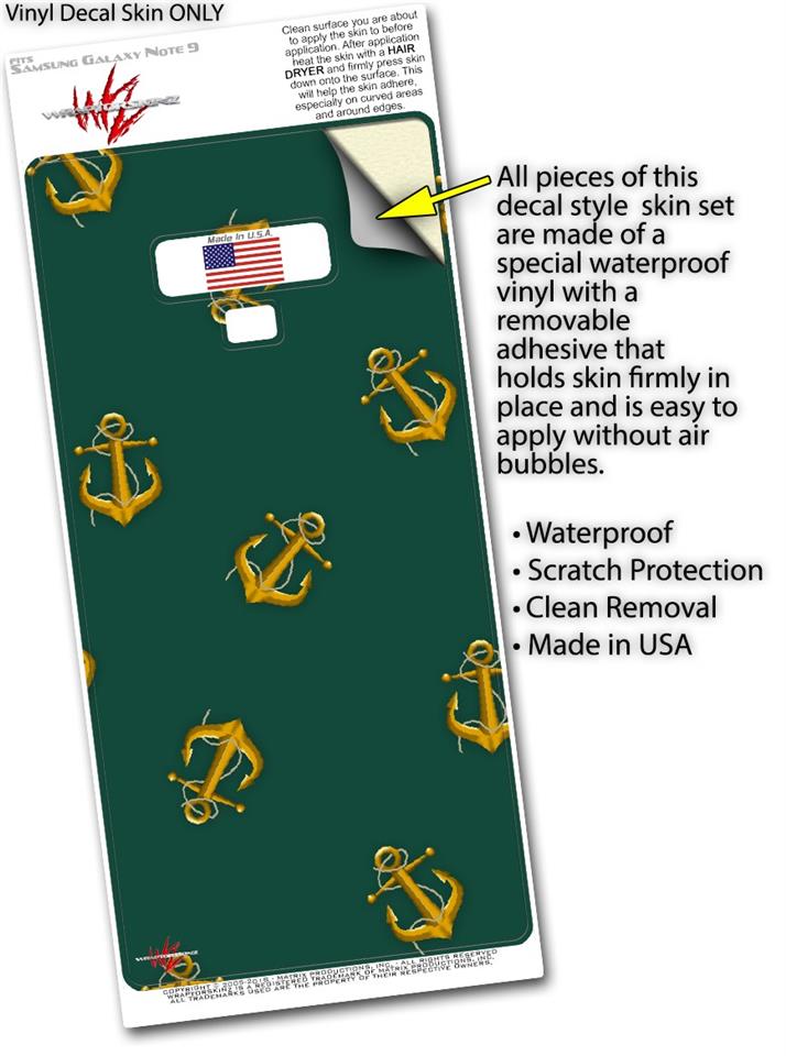 Decal style Skin Wrap compatible with Samsung Galaxy Note 9 Anchors Away Hunter Green