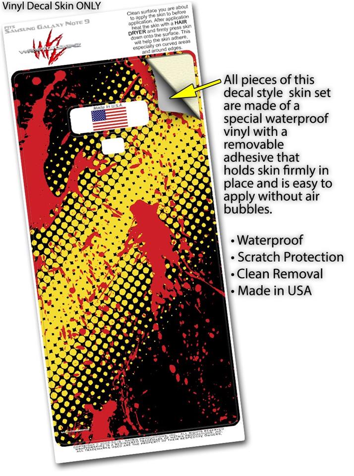 Decal style Skin Wrap compatible with Samsung Galaxy Note 9 Halftone Splatter Yellow Red