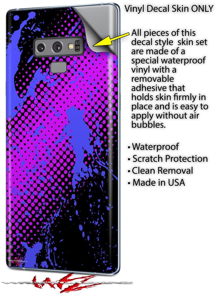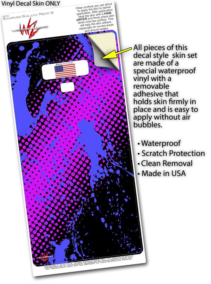 Decal style Skin Wrap compatible with Samsung Galaxy Note 9 Halftone Splatter Blue Hot Pink