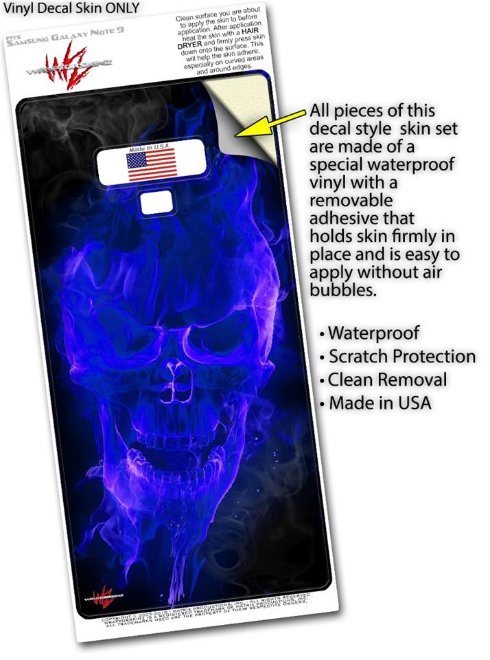 Decal style Skin Wrap compatible with Samsung Galaxy Note 9 Flaming Fire Skull Blue