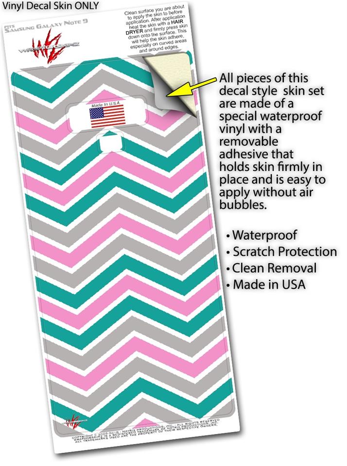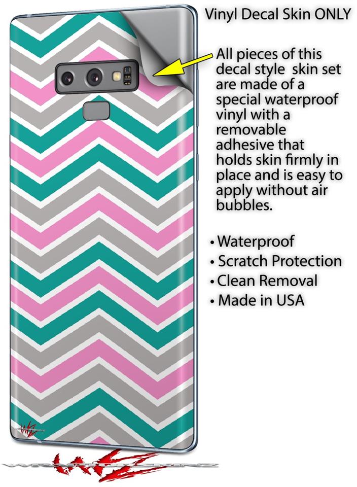 Decal style Skin Wrap compatible with Samsung Galaxy Note 9 Zig Zag Teal Pink and Gray