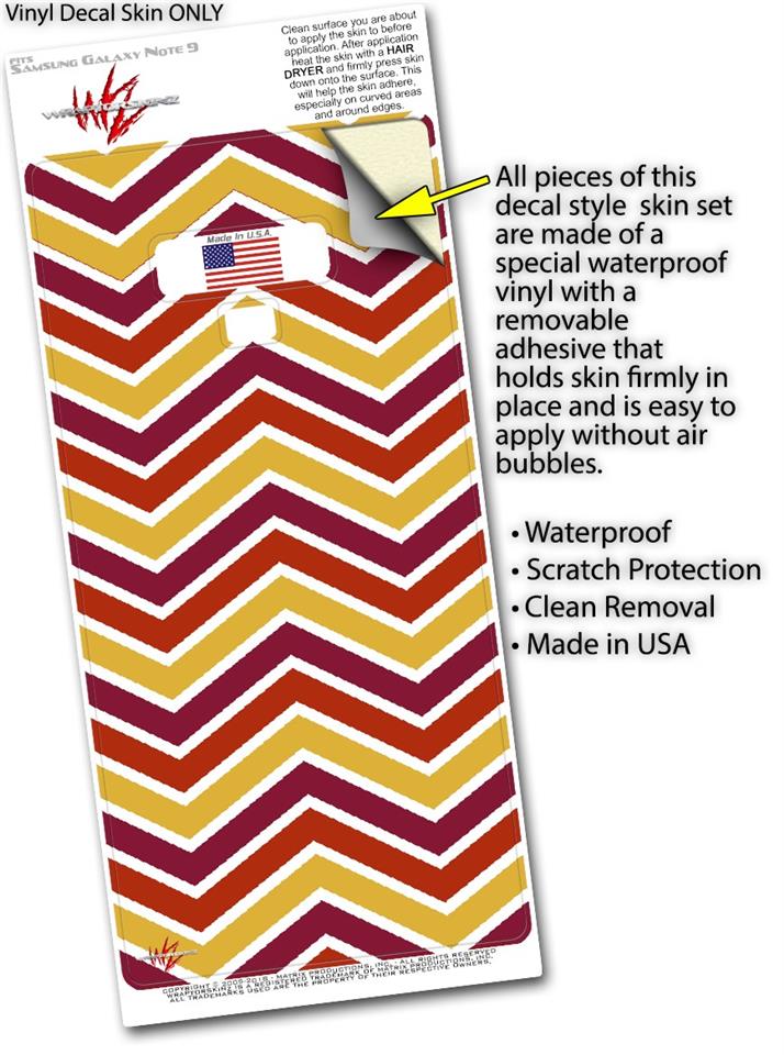 Decal style Skin Wrap compatible with Samsung Galaxy Note 9 Zig Zag Yellow Burgundy Orange