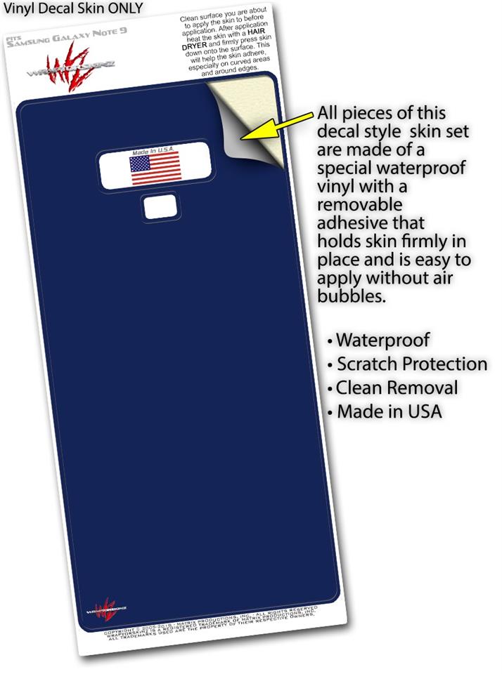 Decal style Skin Wrap compatible with Samsung Galaxy Note 9 Solids Collection Navy Blue