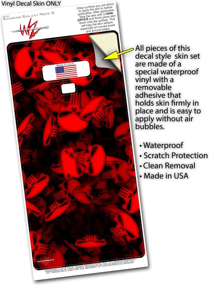 Decal style Skin Wrap compatible with Samsung Galaxy Note 9 Skulls Confetti Red