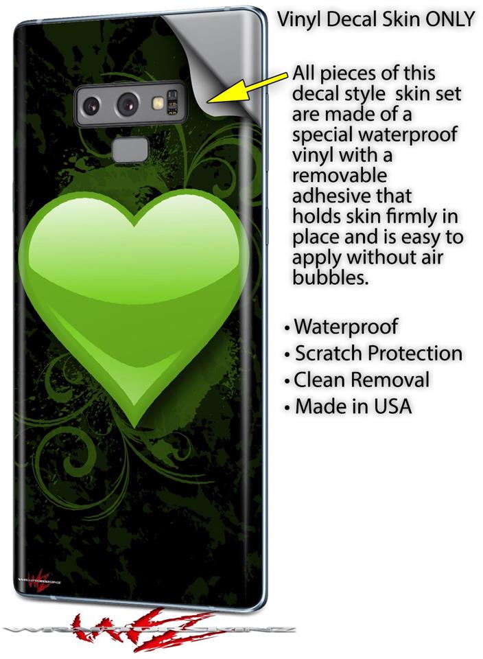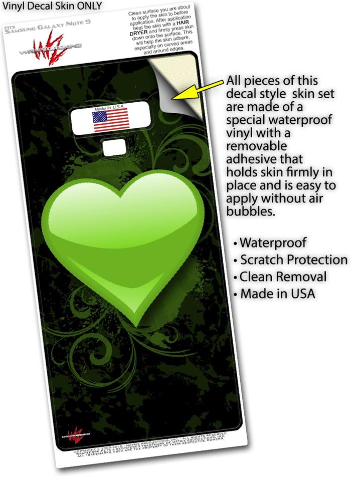 Decal style Skin Wrap compatible with Samsung Galaxy Note 9 Glass Heart Grunge Green