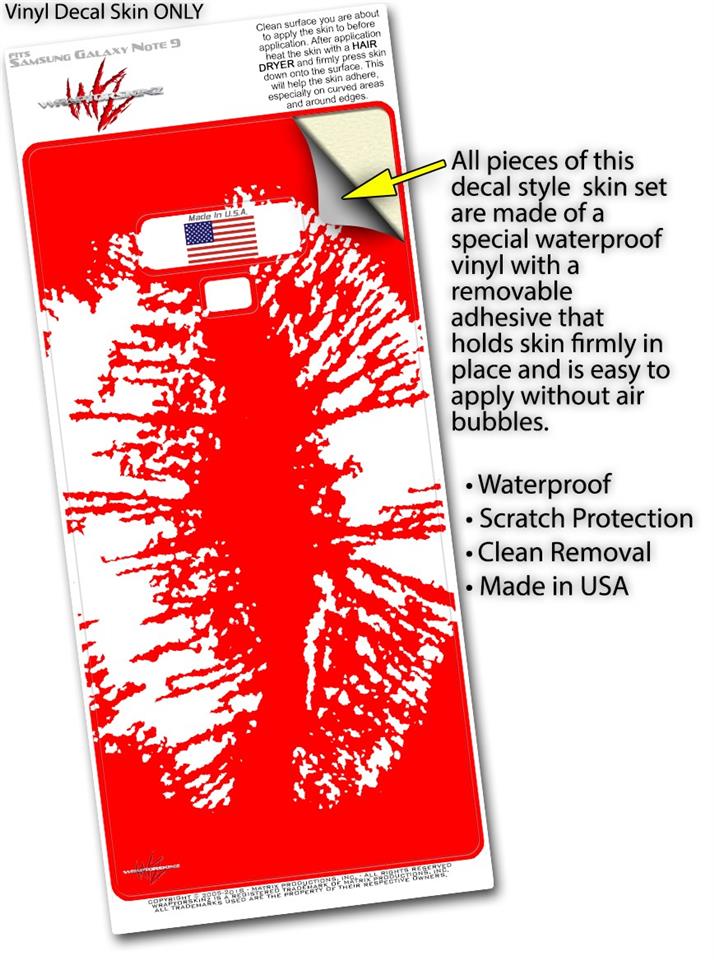 Decal style Skin Wrap compatible with Samsung Galaxy Note 9 Big Kiss White Lips on Red