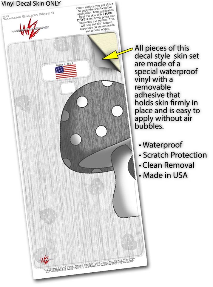 Decal style Skin Wrap compatible with Samsung Galaxy Note 9 Mushrooms Gray