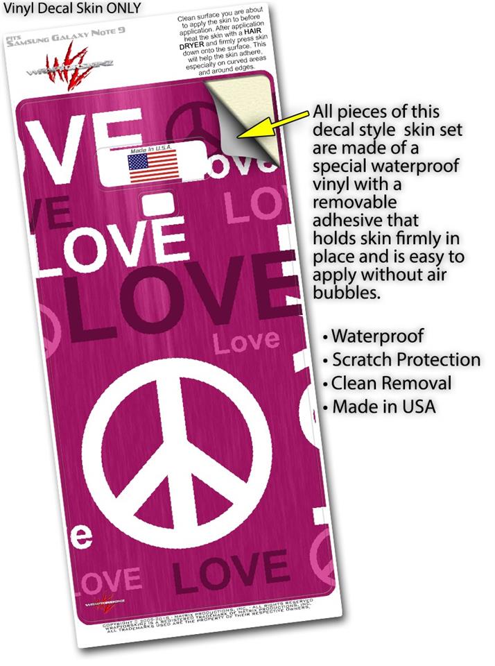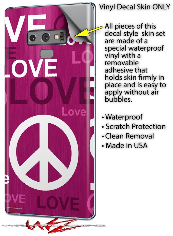 Decal style Skin Wrap compatible with Samsung Galaxy Note 9 Love and Peace Hot Pink