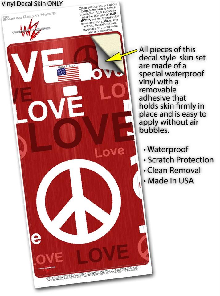 Decal style Skin Wrap compatible with Samsung Galaxy Note 9 Love and Peace Red