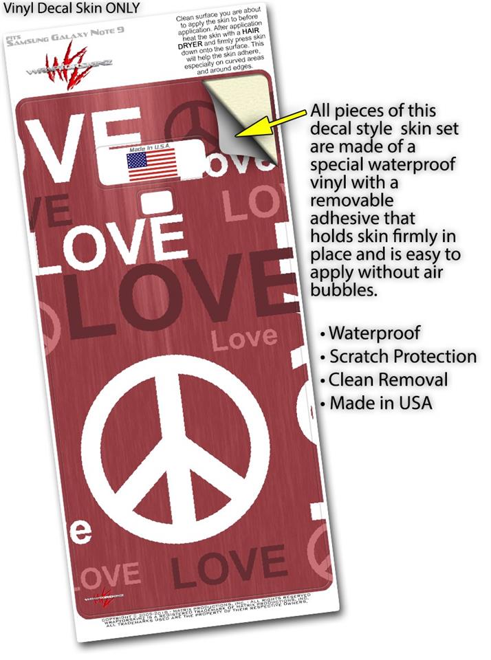 Decal style Skin Wrap compatible with Samsung Galaxy Note 9 Love and Peace Pink