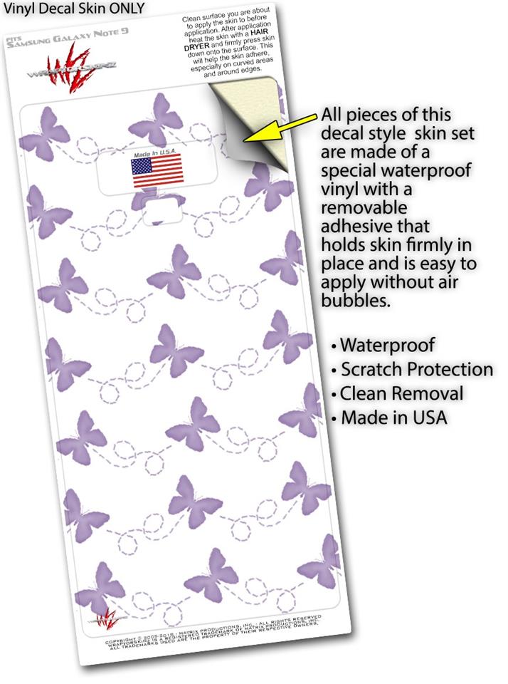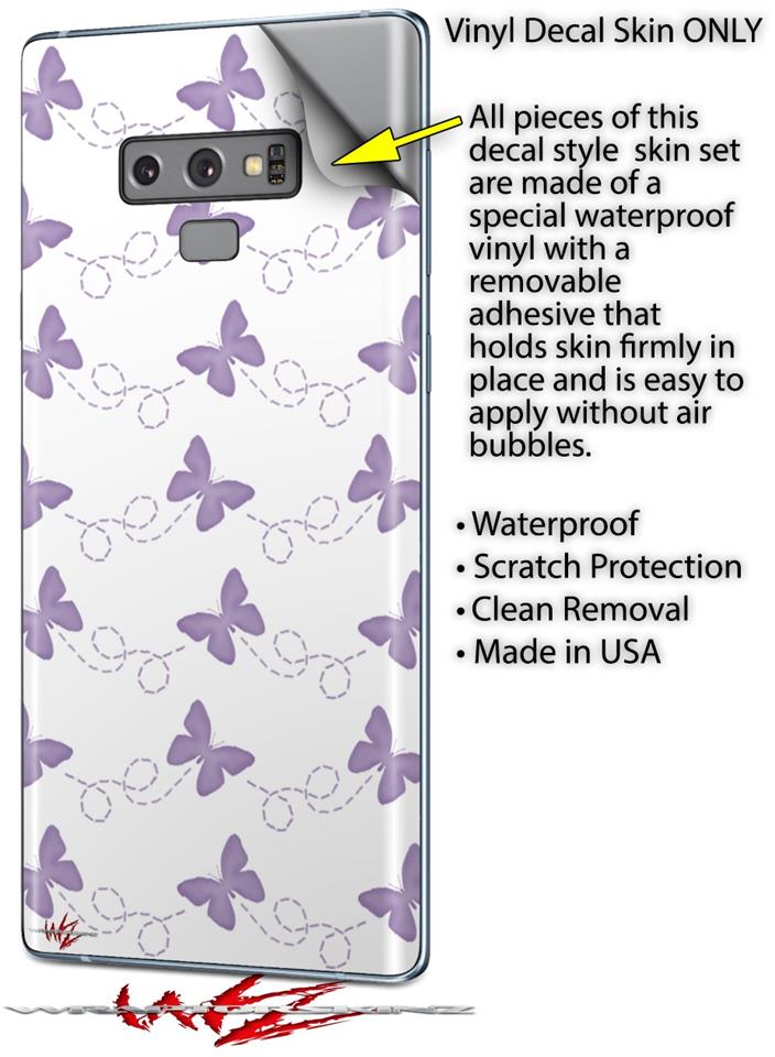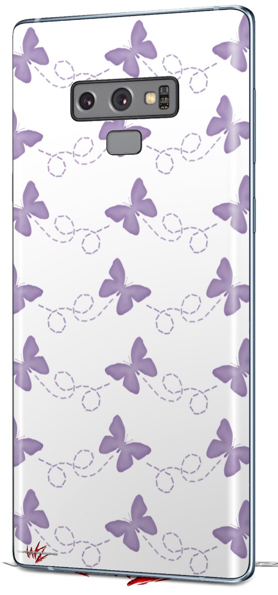 Decal style Skin Wrap compatible with Samsung Galaxy Note 9 Pastel Butterflies Purple on White