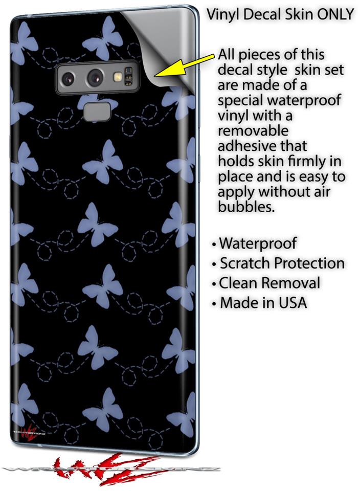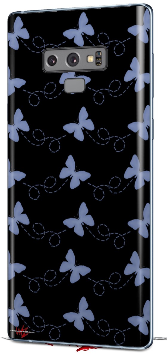 Decal style Skin Wrap compatible with Samsung Galaxy Note 9 Pastel Butterflies Blue on Black