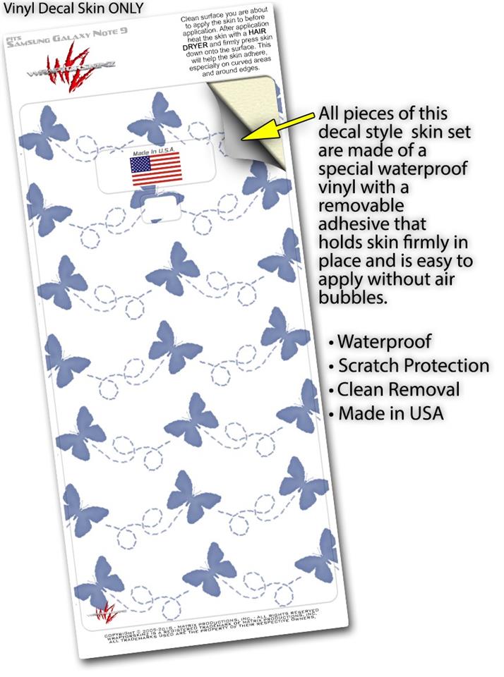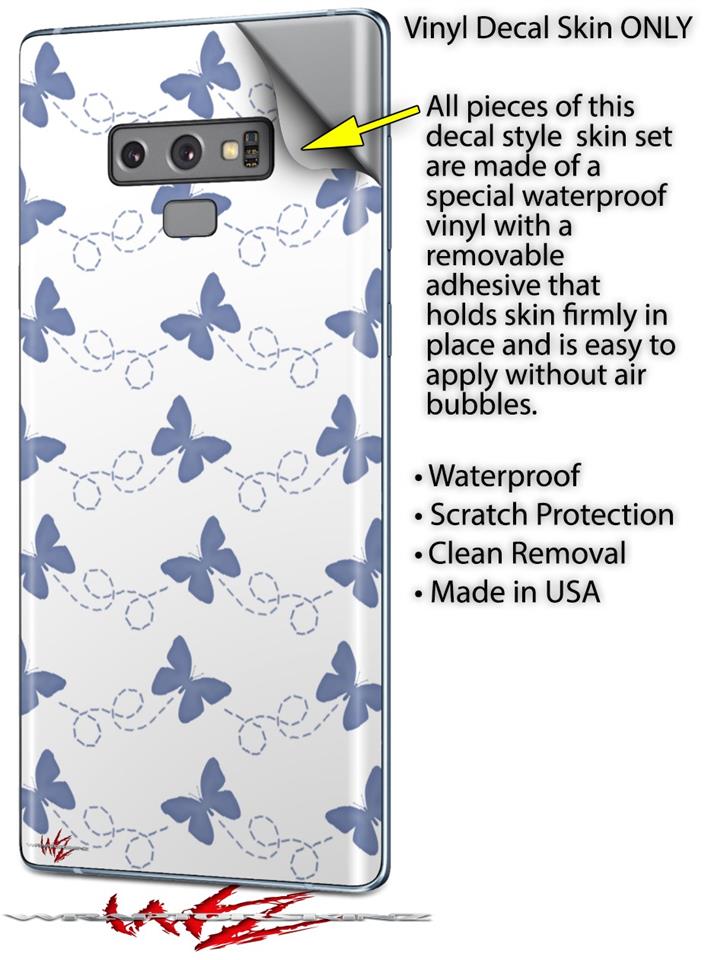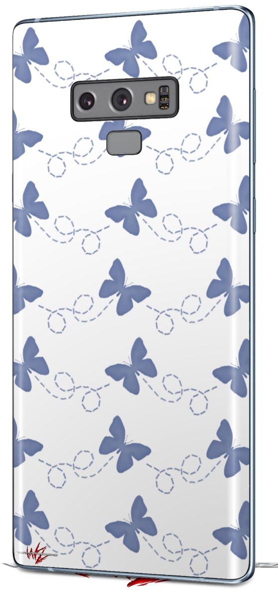 Decal style Skin Wrap compatible with Samsung Galaxy Note 9 Pastel Butterflies Blue on White