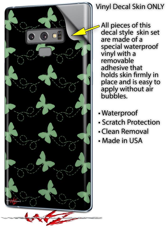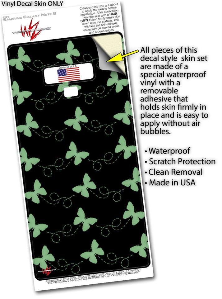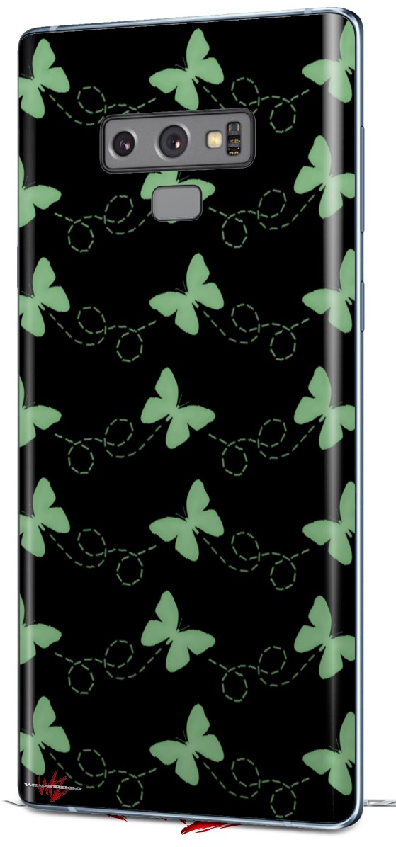 Decal style Skin Wrap compatible with Samsung Galaxy Note 9 Pastel Butterflies Green on Black