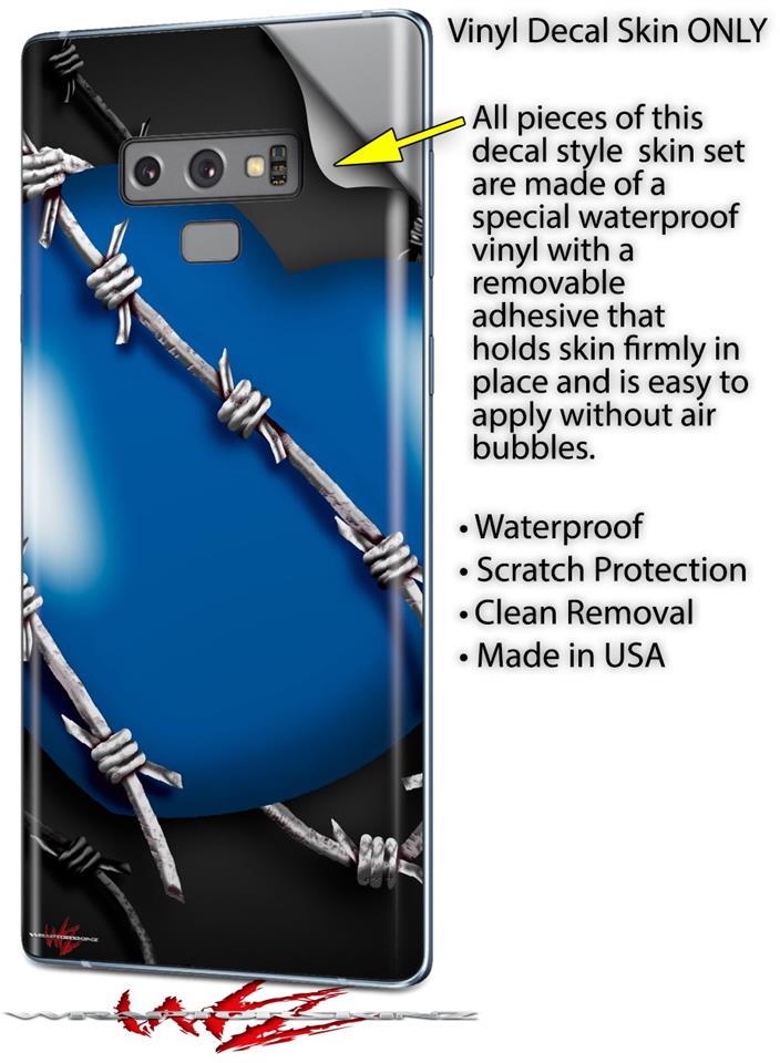 Decal style Skin Wrap compatible with Samsung Galaxy Note 9 Barbwire Heart Blue