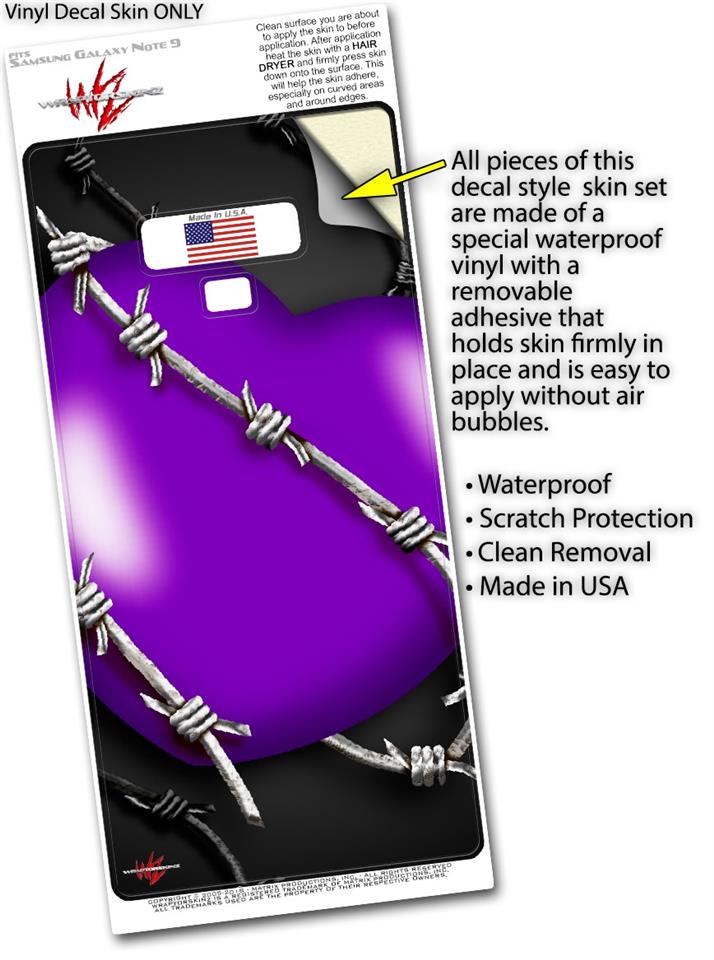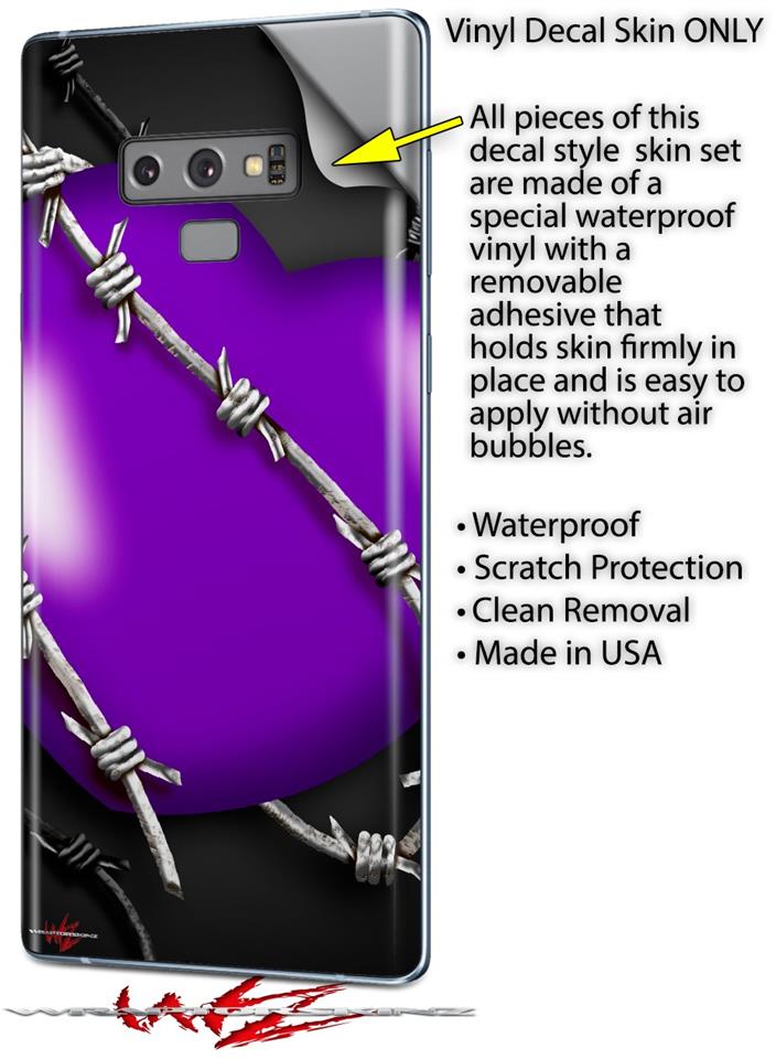 Decal style Skin Wrap compatible with Samsung Galaxy Note 9 Barbwire Heart Purple