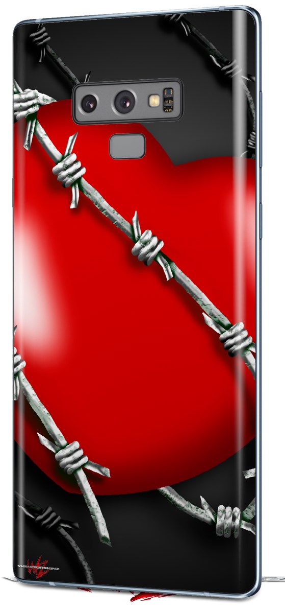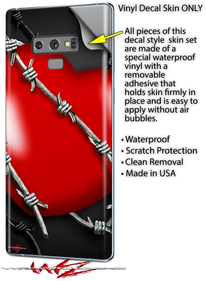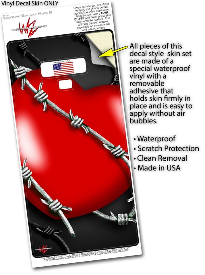 Decal style Skin Wrap compatible with Samsung Galaxy Note 9 Barbwire Heart Red