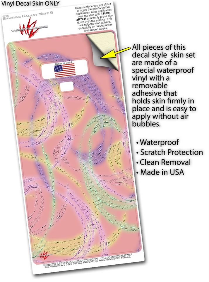 WraptorSkinz® skin wraps for the Samsung Galaxy Note 9 are printed using superb photo quality designs and vibrant colors printed with special fade resistant inks that last even in direct sun for years. WraptorSkinz are a composite of two layers of commercial grade materials. The bottom layer is a soft, flexible vinyl with a special removable adhesive that is easily positioned, applied without air bubbles. Next, we print the bottom layer with UV protected, fade resistant inks that deliver superb photo quality designs in vibrant colors. Finally, we bond a professional grade laminate over the entire Galaxy Note 9 skin adding a glossy protective finish. This product is not affiliated with or endorsed by Samsung.
