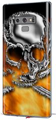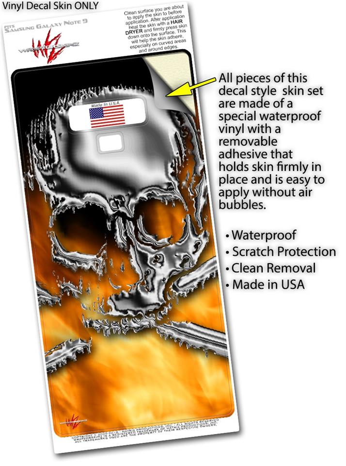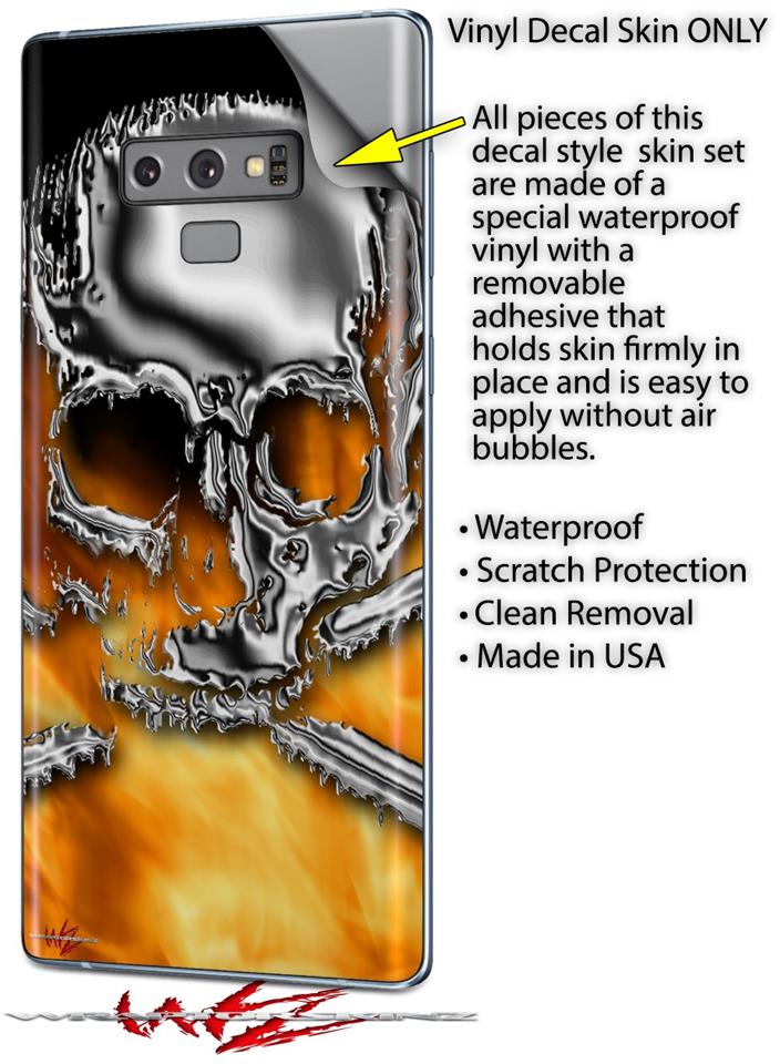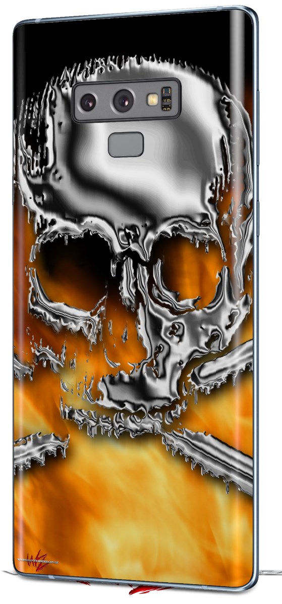 Decal style Skin Wrap compatible with Samsung Galaxy Note 9 Chrome Skull on Fire
