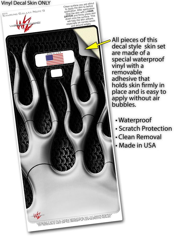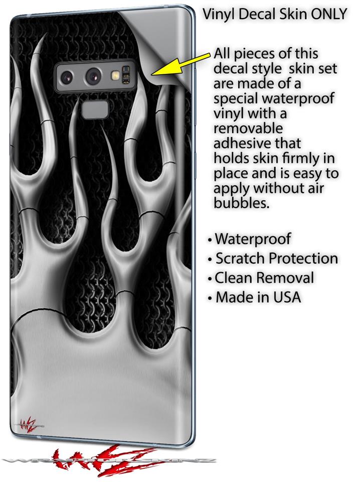 Decal style Skin Wrap compatible with Samsung Galaxy Note 9 Metal Flames Chrome