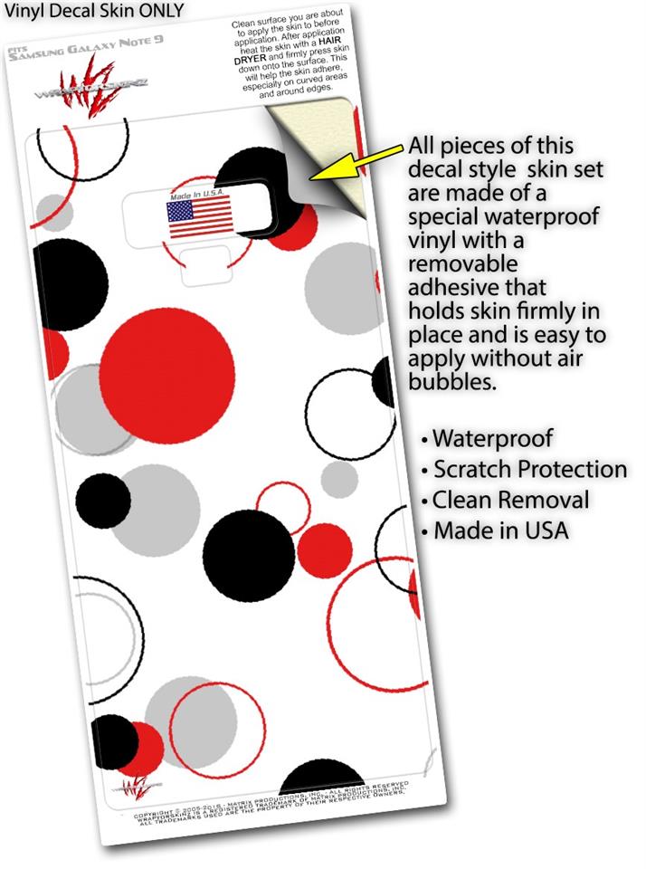 Decal style Skin Wrap compatible with Samsung Galaxy Note 9 Lots of Dots Red on White