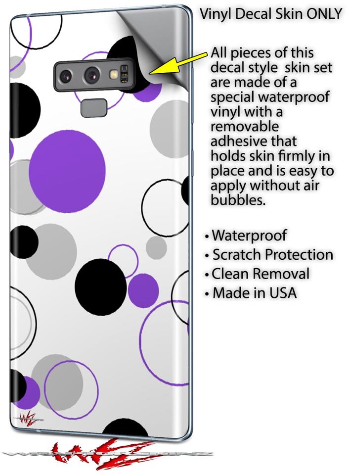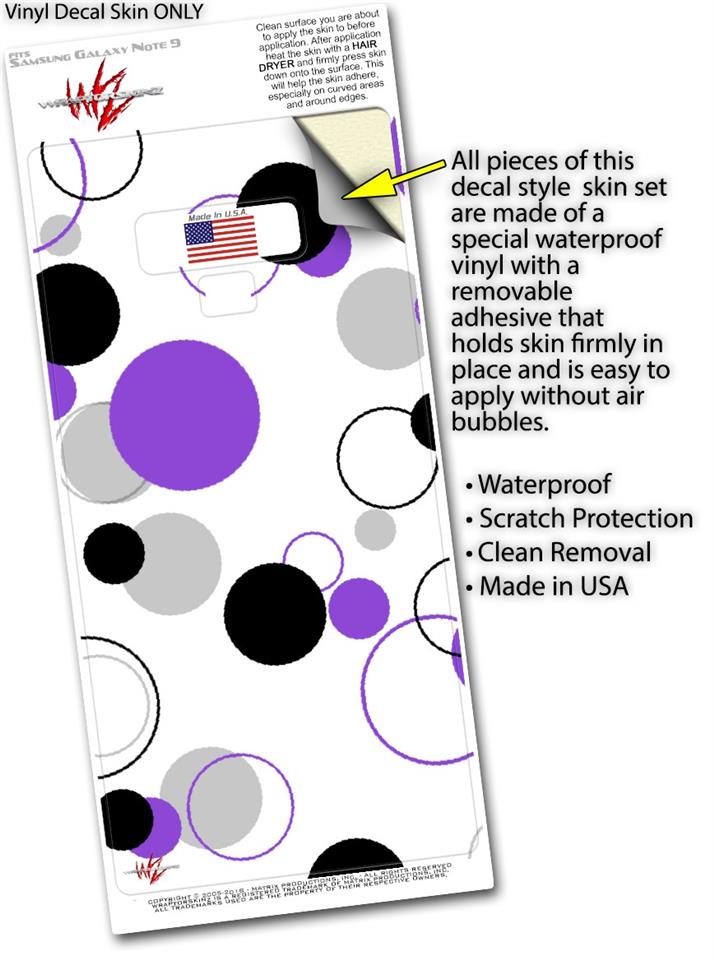 Decal style Skin Wrap compatible with Samsung Galaxy Note 9 Lots of Dots Purple on White