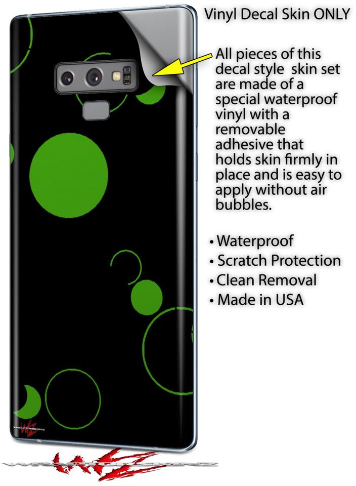 Decal style Skin Wrap compatible with Samsung Galaxy Note 9 Lots of Dots Green on Black