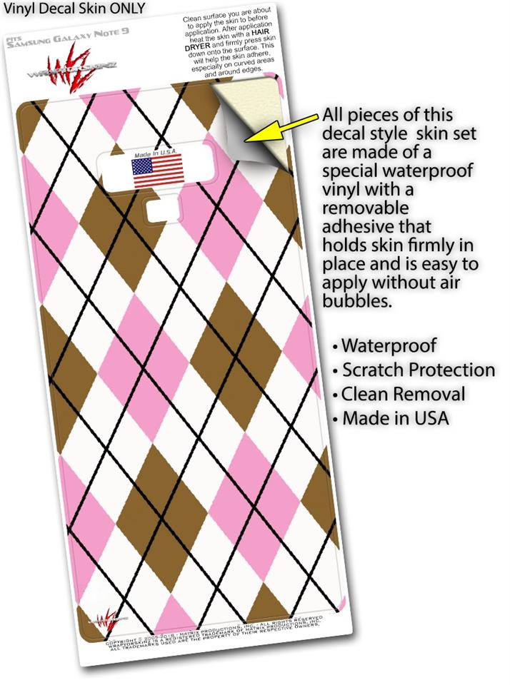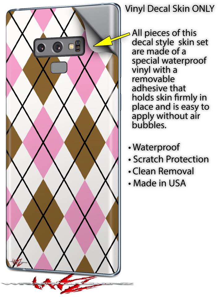 Decal style Skin Wrap compatible with Samsung Galaxy Note 9 Argyle Pink and Brown