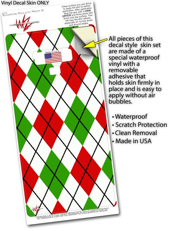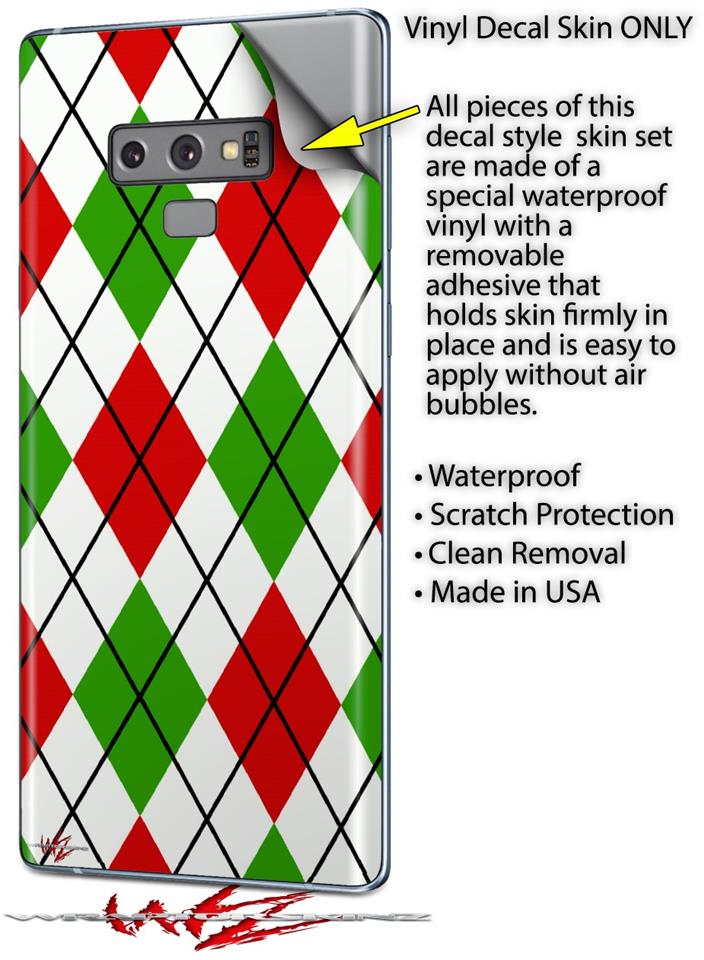 Decal style Skin Wrap compatible with Samsung Galaxy Note 9 Argyle Red and Green