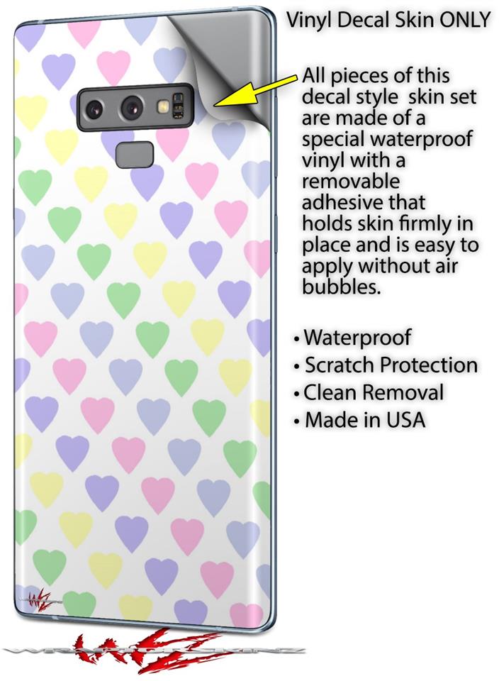 Decal style Skin Wrap compatible with Samsung Galaxy Note 9 Pastel Hearts on White