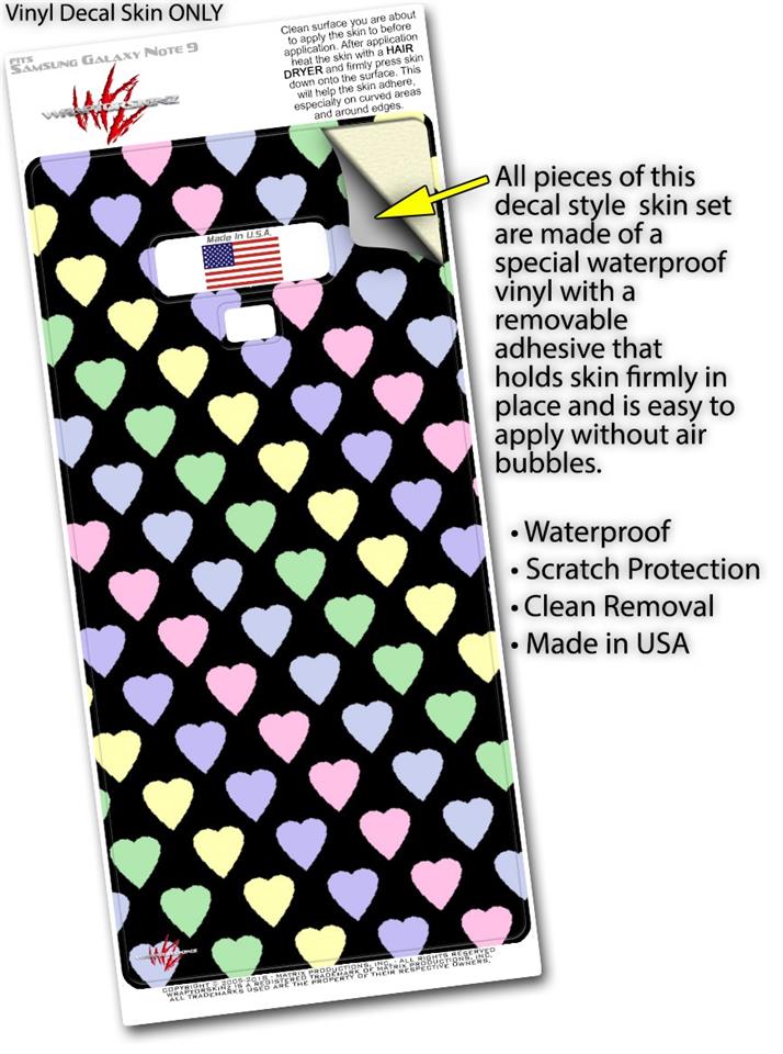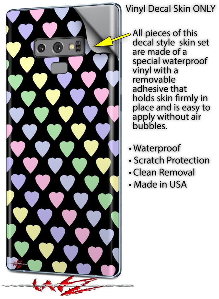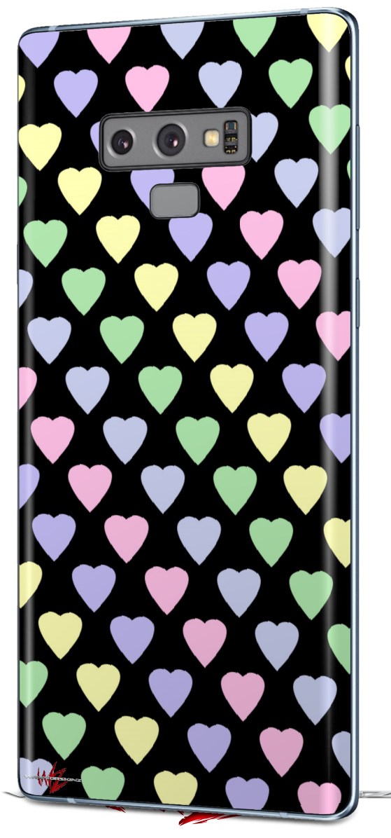 Decal style Skin Wrap compatible with Samsung Galaxy Note 9 Pastel Hearts on Black