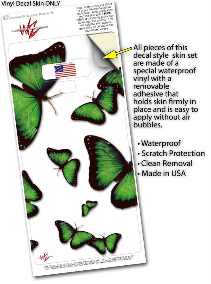Decal style Skin Wrap compatible with Samsung Galaxy Note 9 Butterflies Green