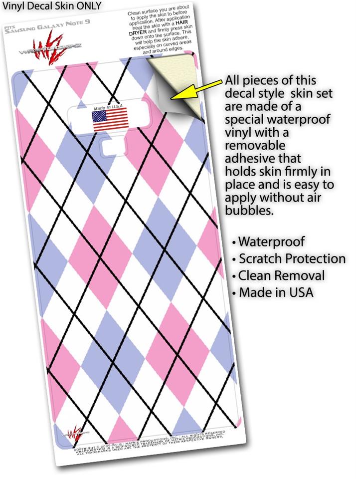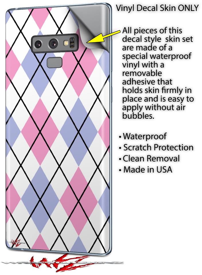 Decal style Skin Wrap compatible with Samsung Galaxy Note 9 Argyle Pink and Blue