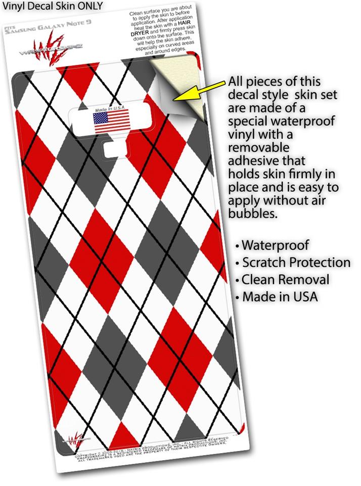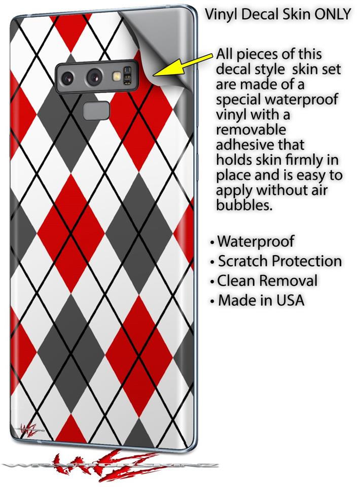 Decal style Skin Wrap compatible with Samsung Galaxy Note 9 Argyle Red and Gray