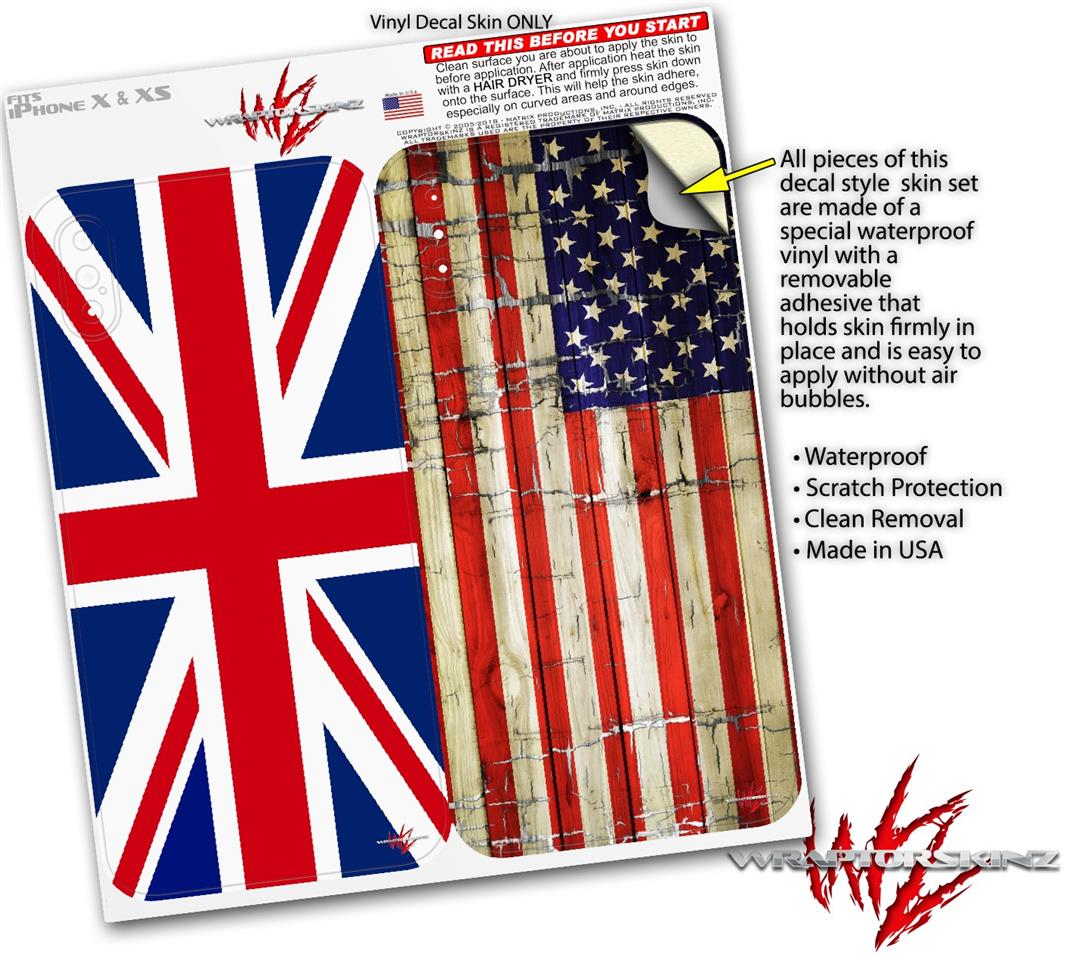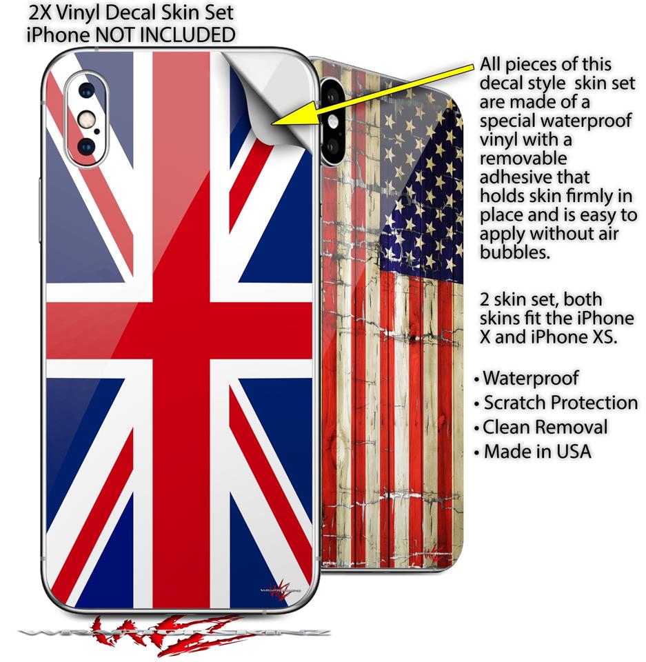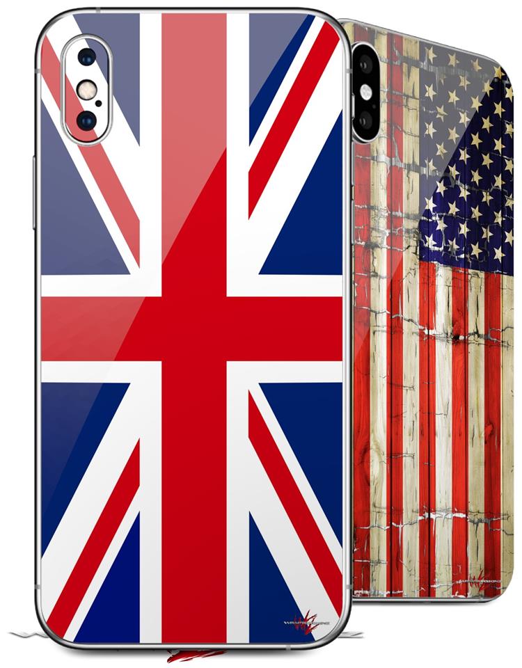 2 Decal style Skin Wraps set compatible with Apple iPhone X and XS Union Jack 02