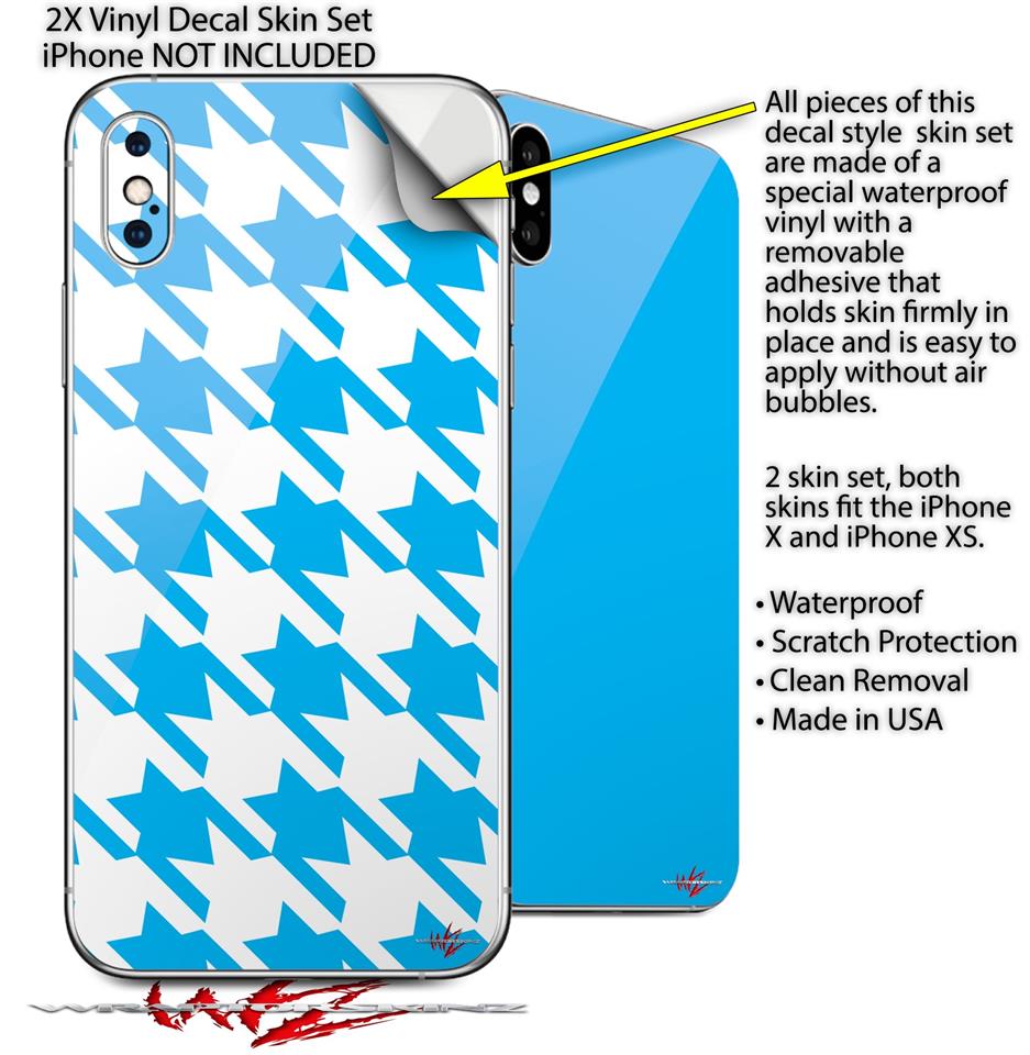 2 Decal style Skin Wraps set compatible with Apple iPhone X and XS Houndstooth Blue Neon
