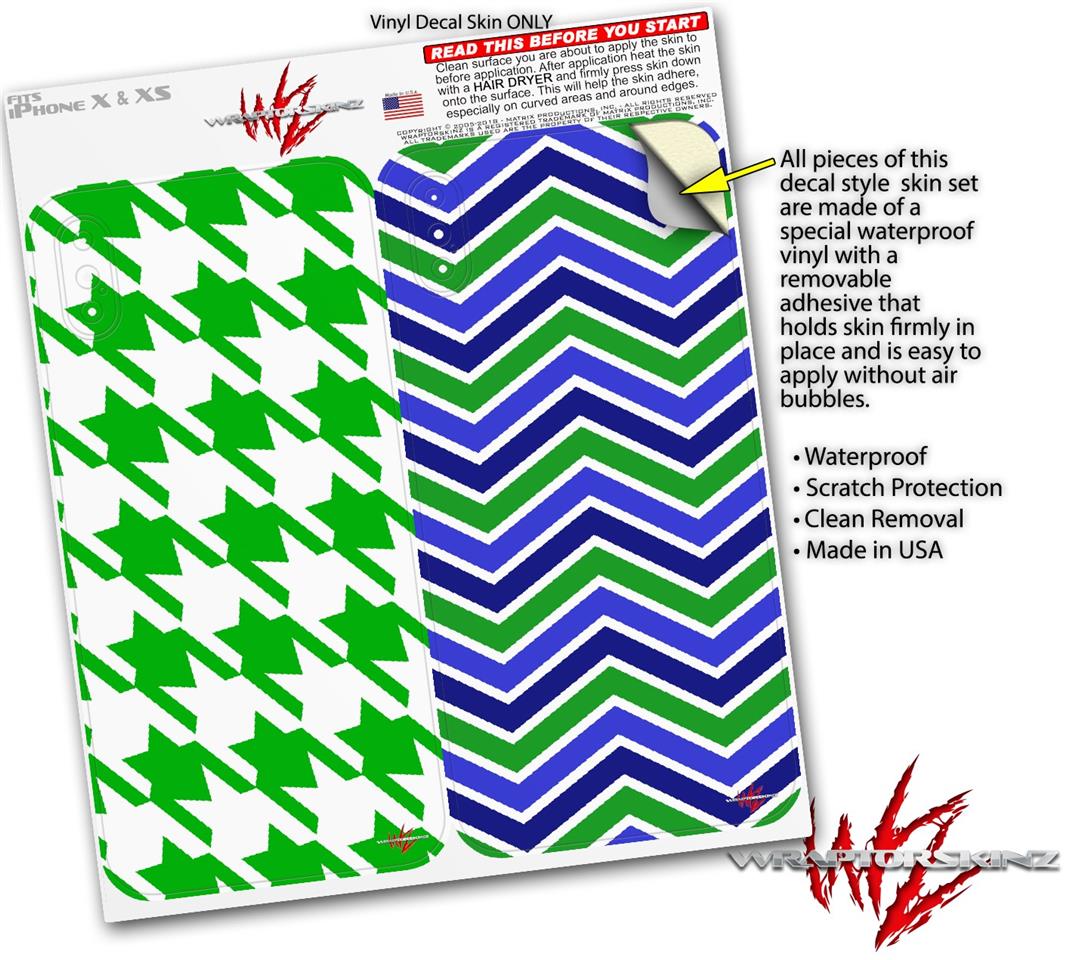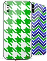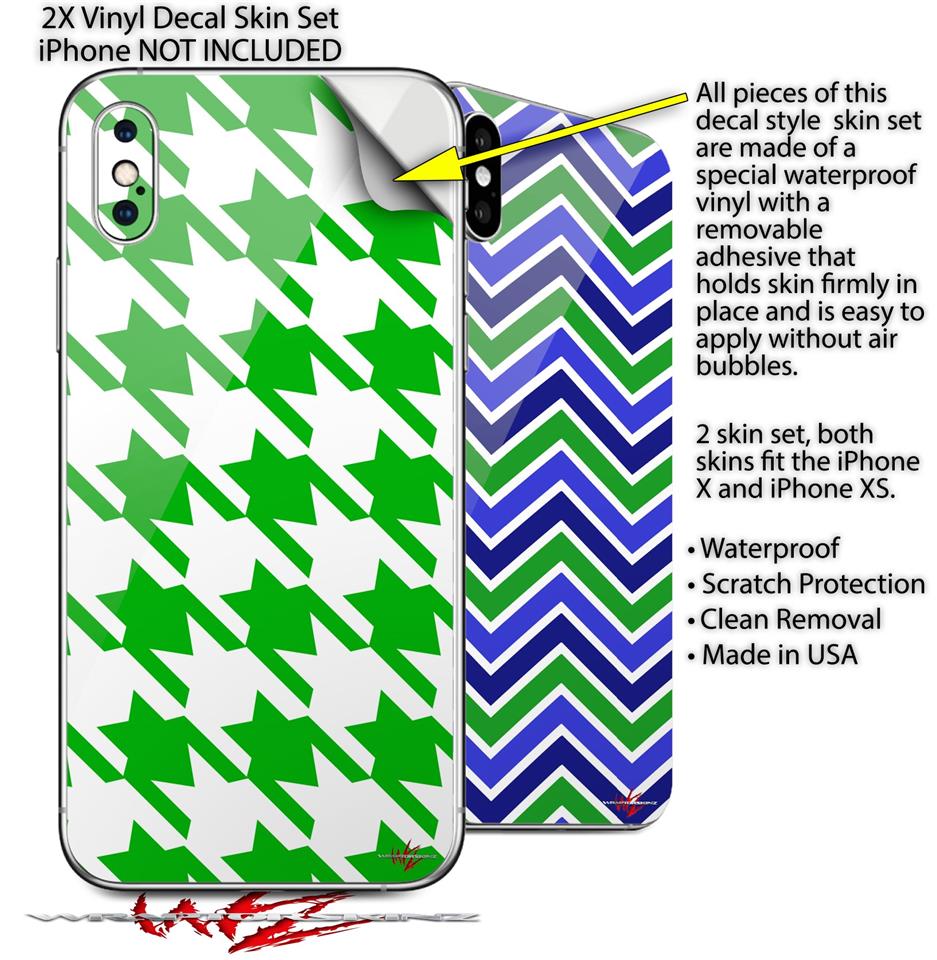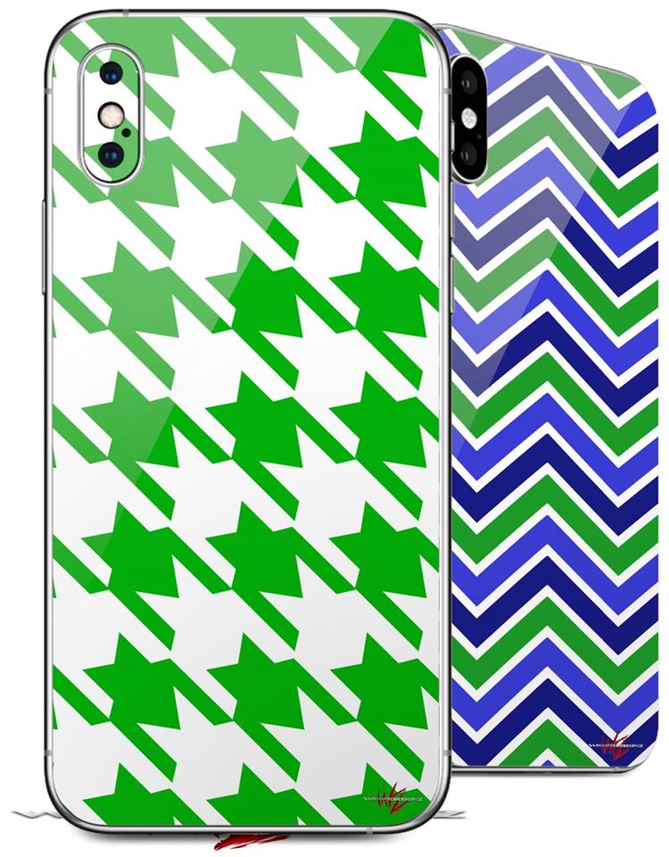 2 Decal style Skin Wraps set compatible with Apple iPhone X and XS Houndstooth Green