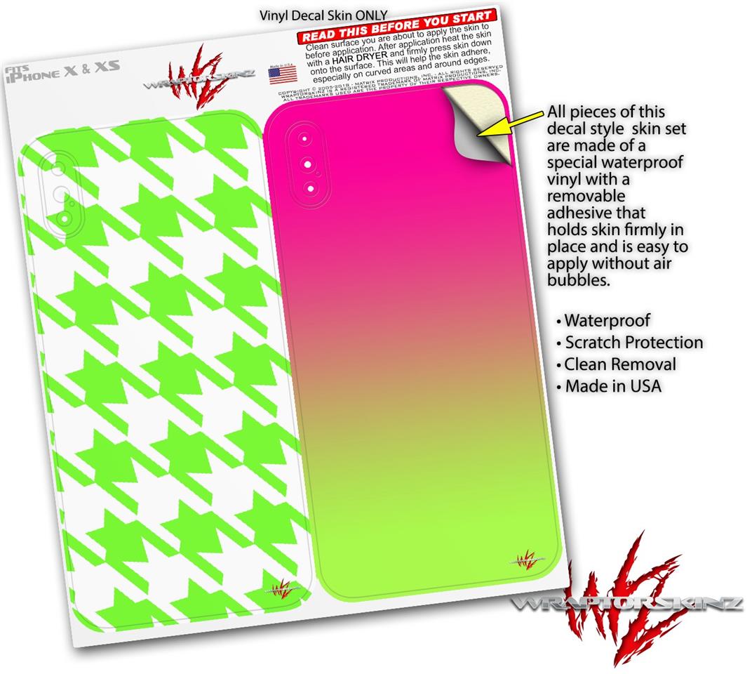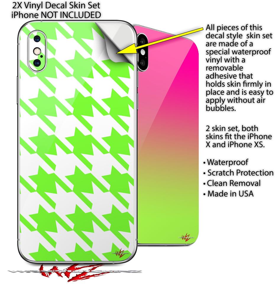 2 Decal style Skin Wraps set compatible with Apple iPhone X and XS Houndstooth Neon Lime Green