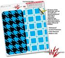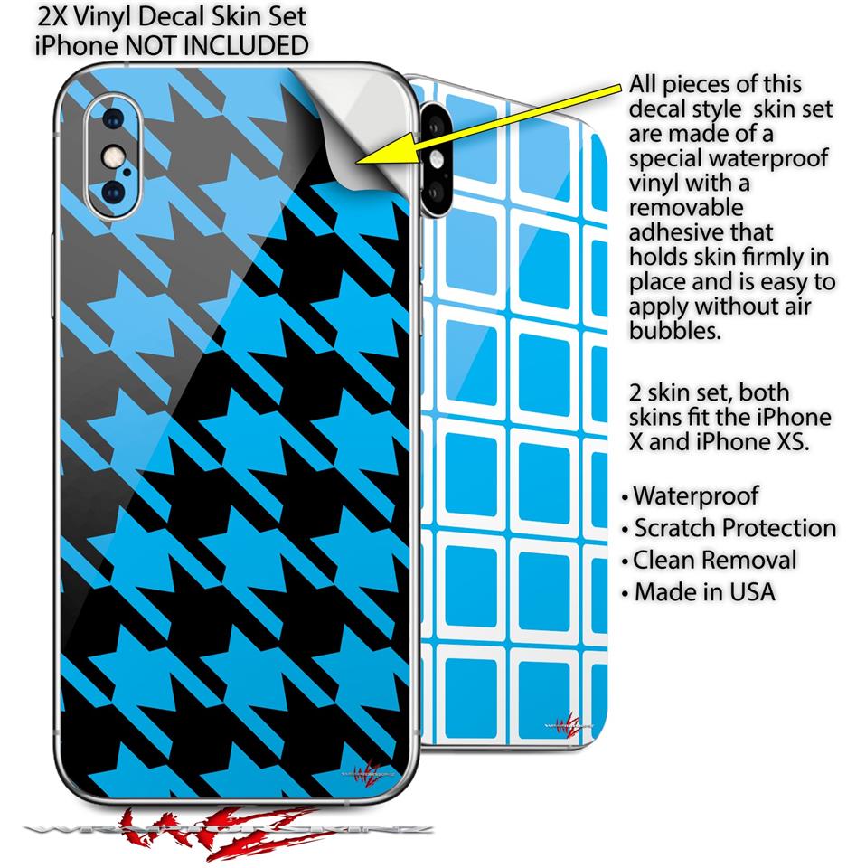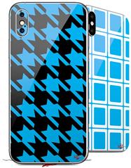 2 Decal style Skin Wraps set compatible with Apple iPhone X and XS Houndstooth Blue Neon on Black