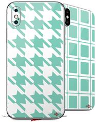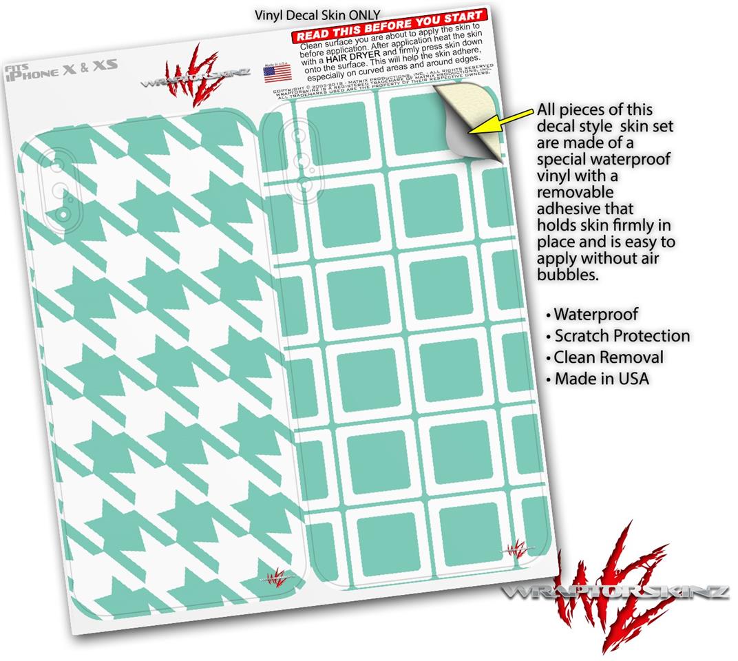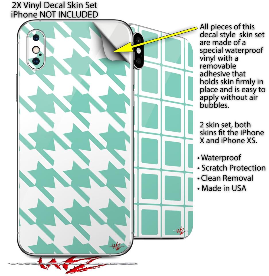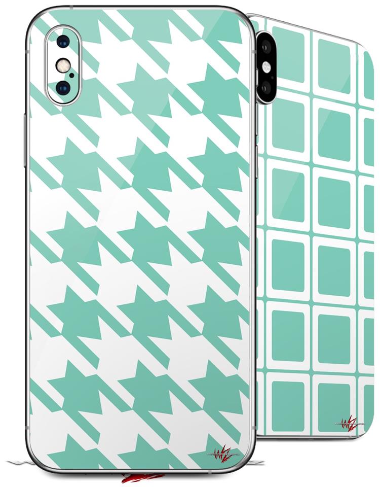 2 Decal style Skin Wraps set compatible with Apple iPhone X and XS Houndstooth Seafoam Green