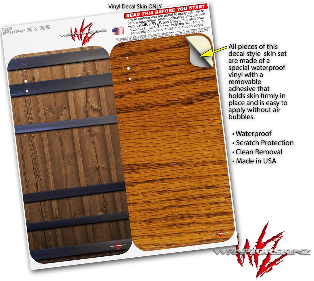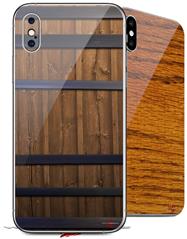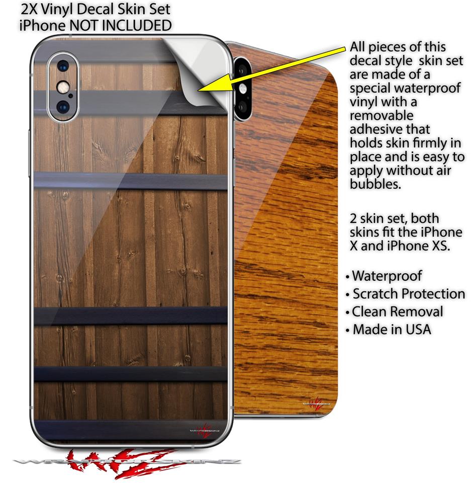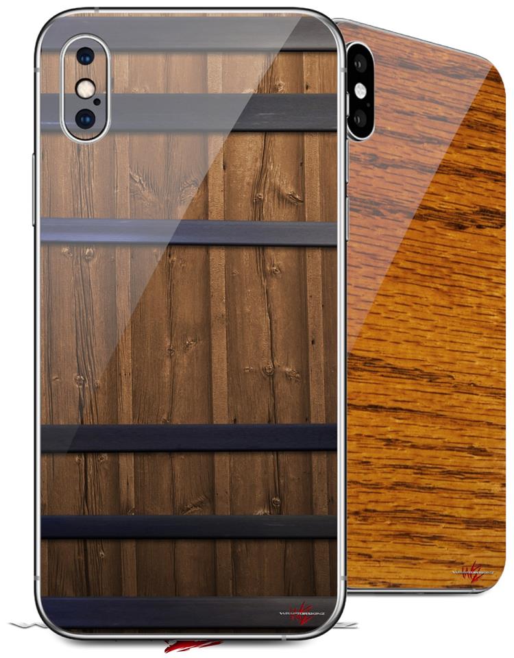 2 Decal style Skin Wraps set compatible with Apple iPhone X and XS Wooden Barrel