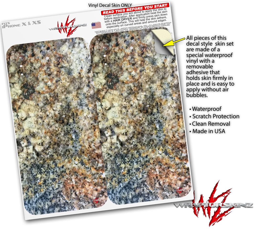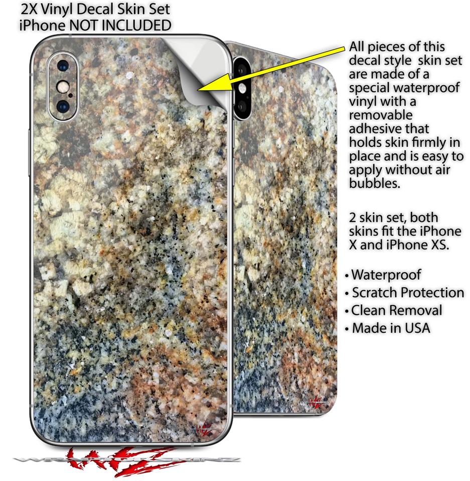 2 Decal style Skin Wraps set compatible with Apple iPhone X and XS Marble Granite 05 Speckled