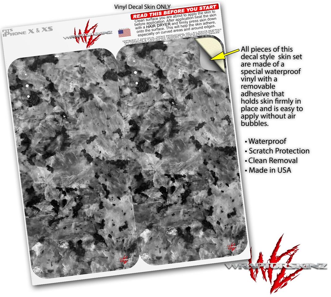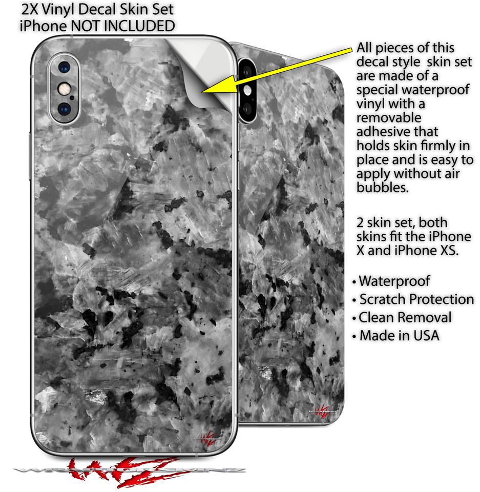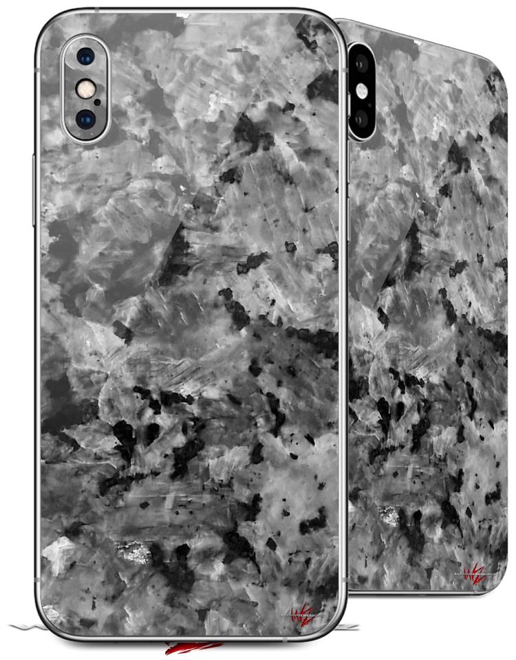 2 Decal style Skin Wraps set compatible with Apple iPhone X and XS Marble Granite 02 Speckled Black Gray