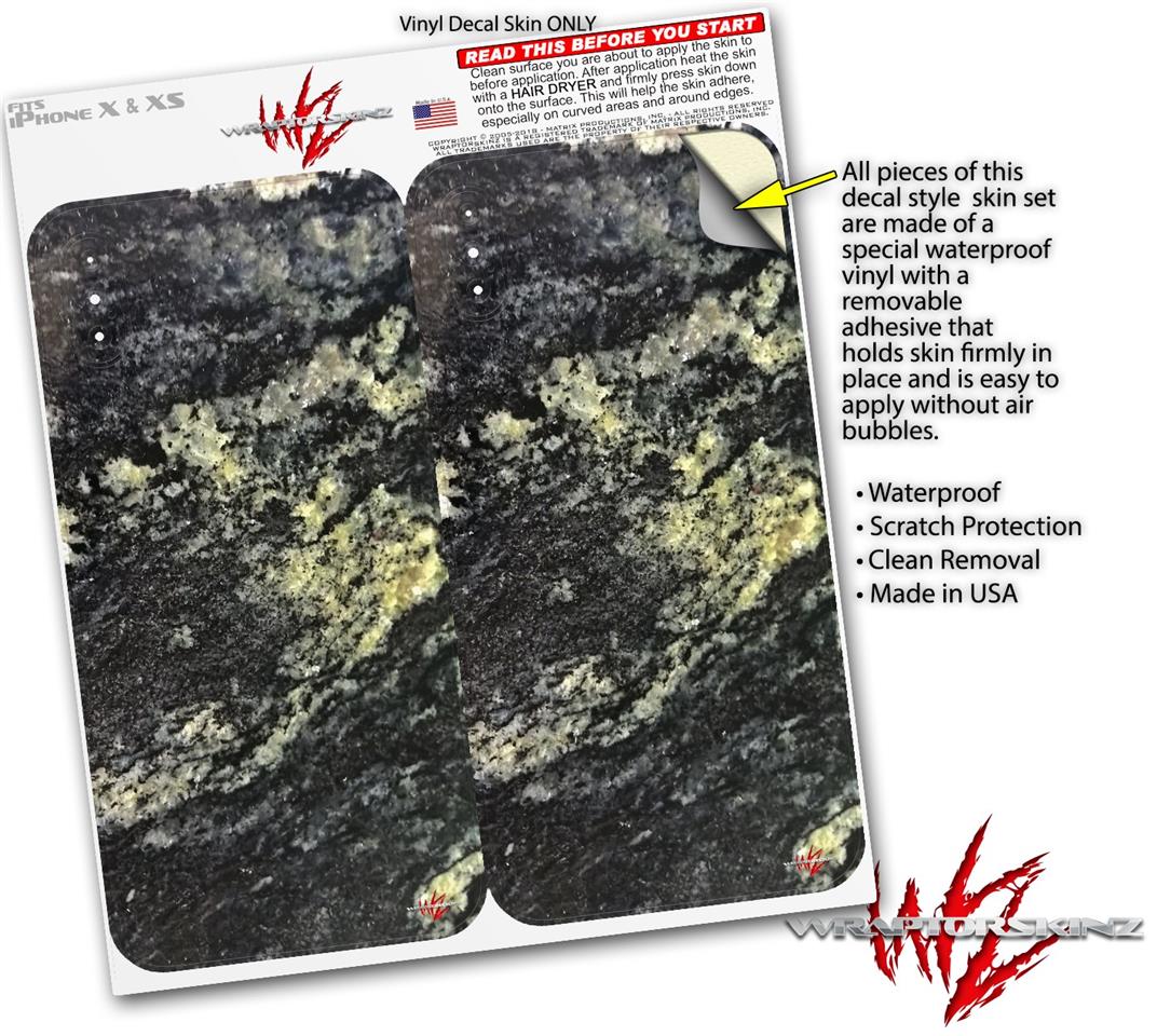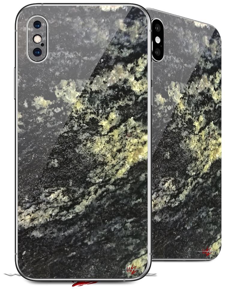 2 Decal style Skin Wraps set compatible with Apple iPhone X and XS Marble Granite 03 Black