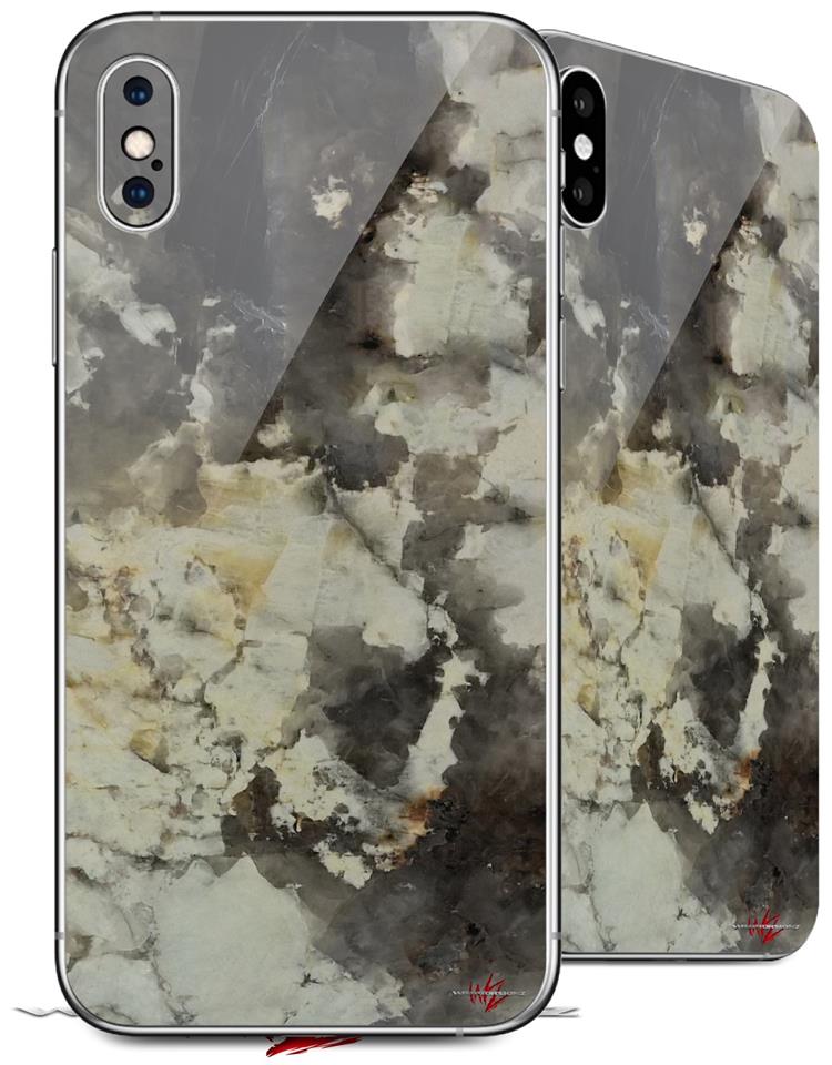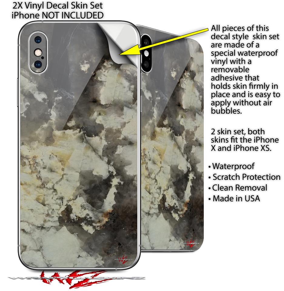 2 Decal style Skin Wraps set compatible with Apple iPhone X and XS Marble Granite 04