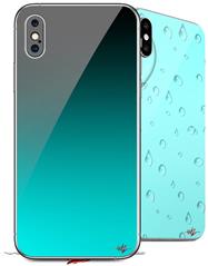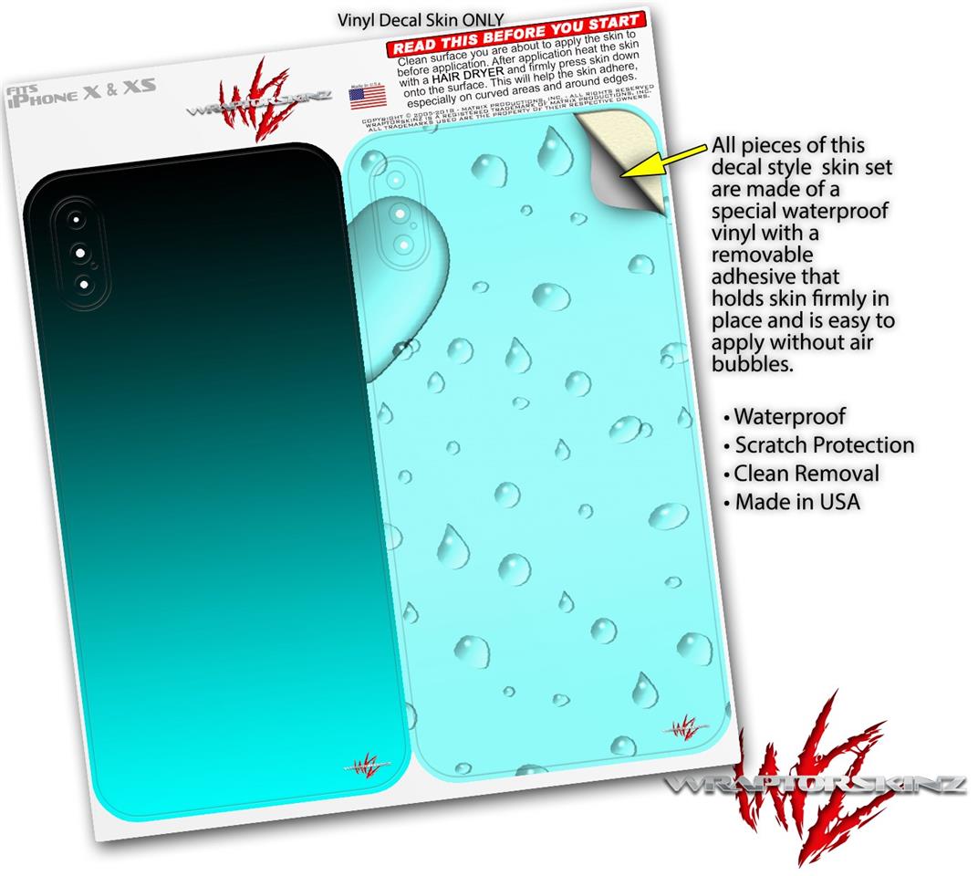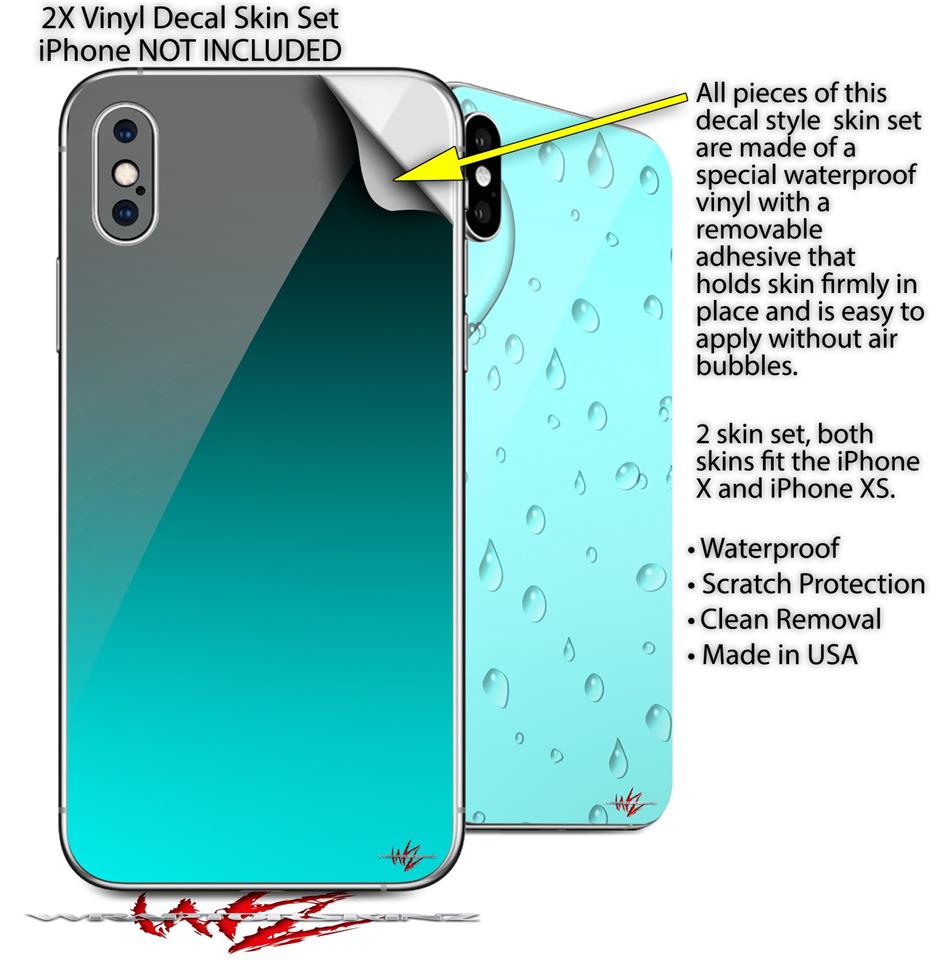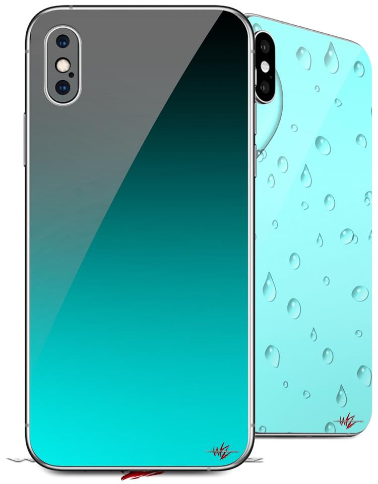 2 Decal style Skin Wraps set compatible with Apple iPhone X and XS Smooth Fades Neon Teal Black