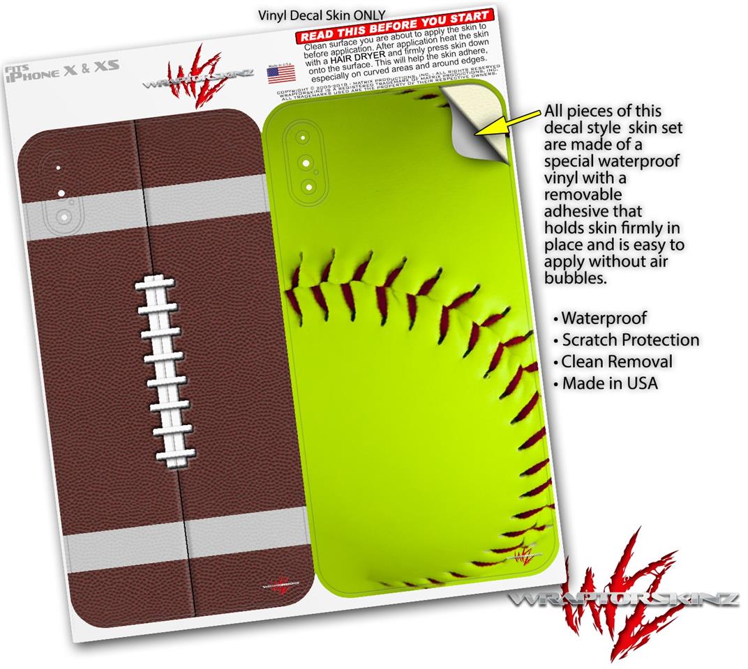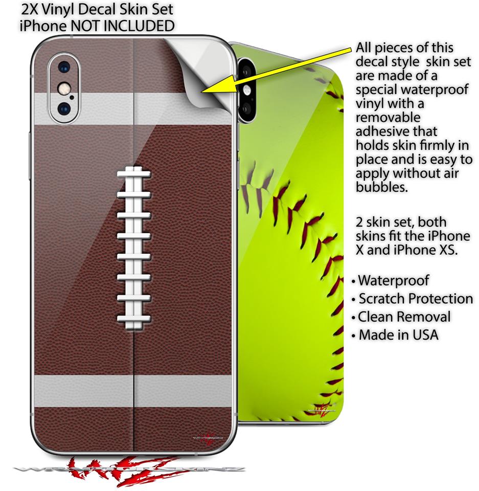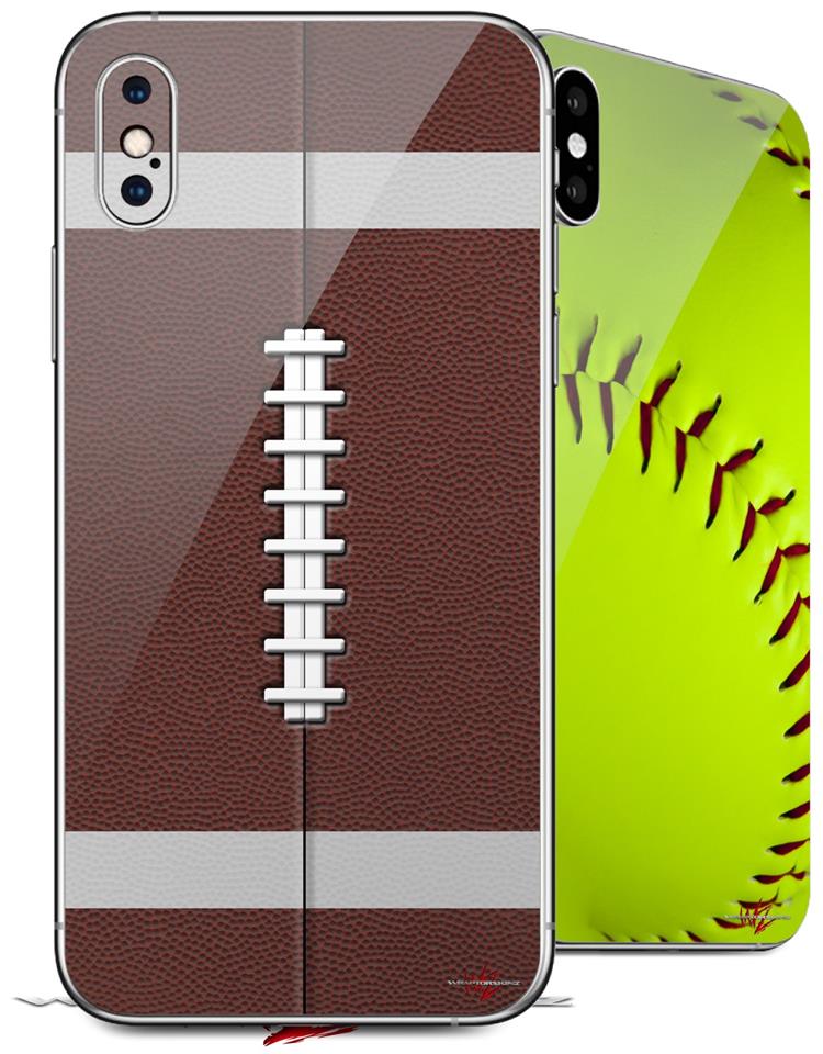 2 Decal style Skin Wraps set compatible with Apple iPhone X and XS Football