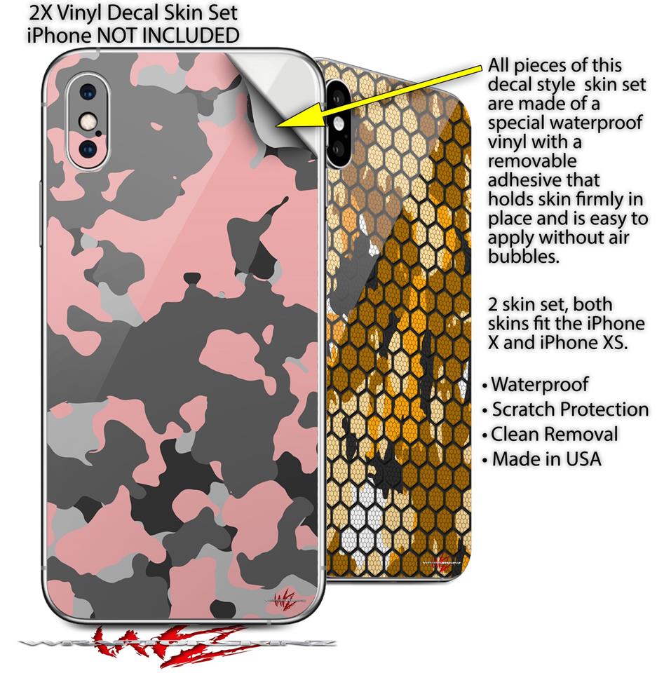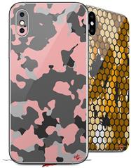 2 Decal style Skin Wraps set compatible with Apple iPhone X and XS WraptorCamo Old School Camouflage Camo Pink
