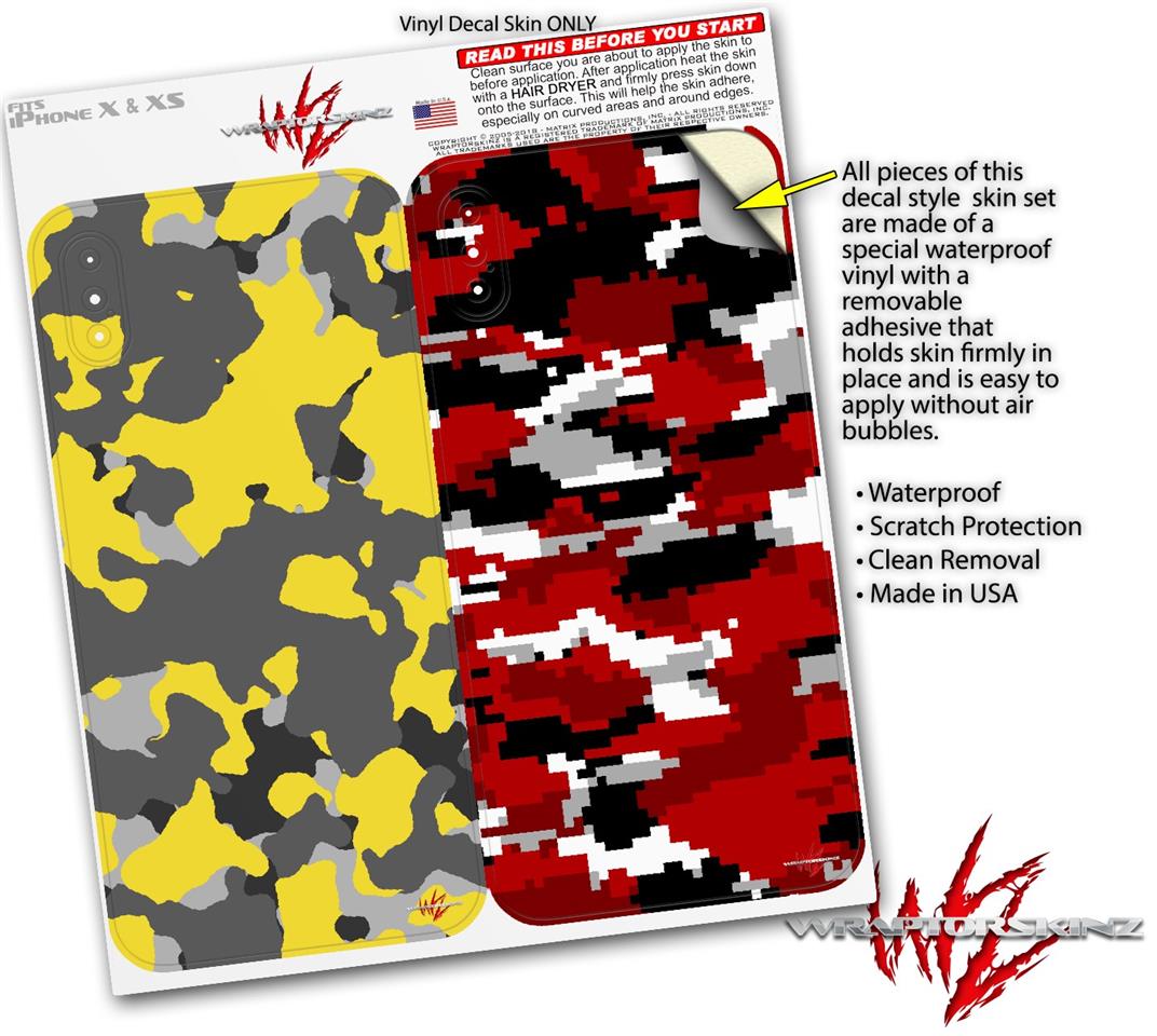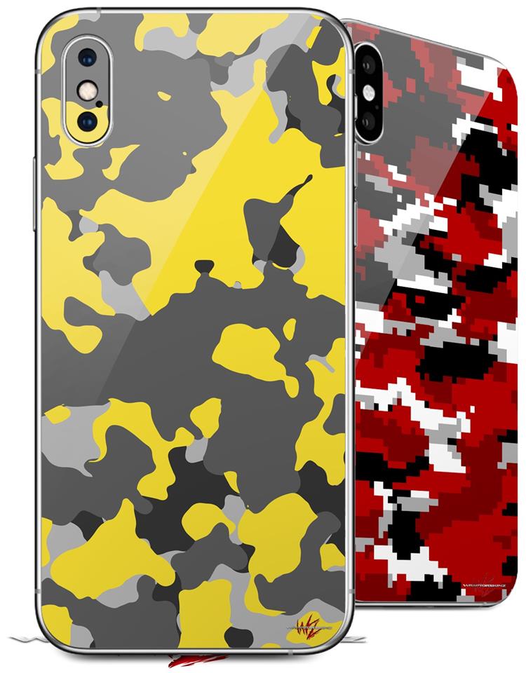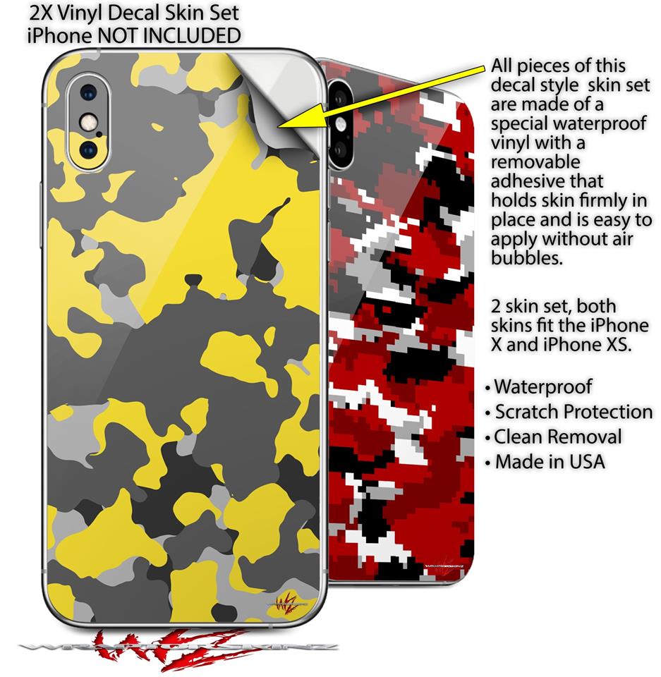 2 Decal style Skin Wraps set compatible with Apple iPhone X and XS WraptorCamo Old School Camouflage Camo Yellow